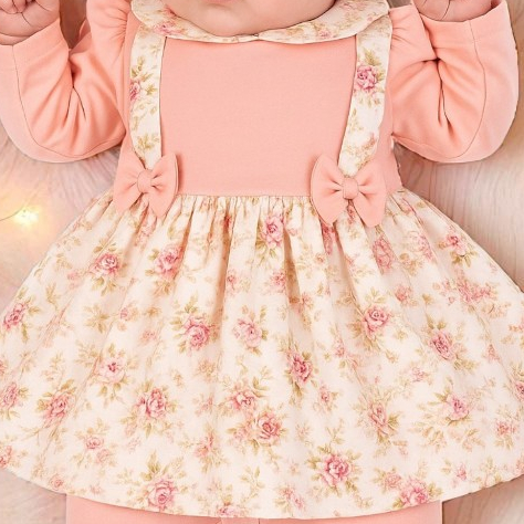 Saída Maternidade Bebê Menina Charme 4 Peças Rosa Floral com Manta, Macacão, Vestido e Faixa