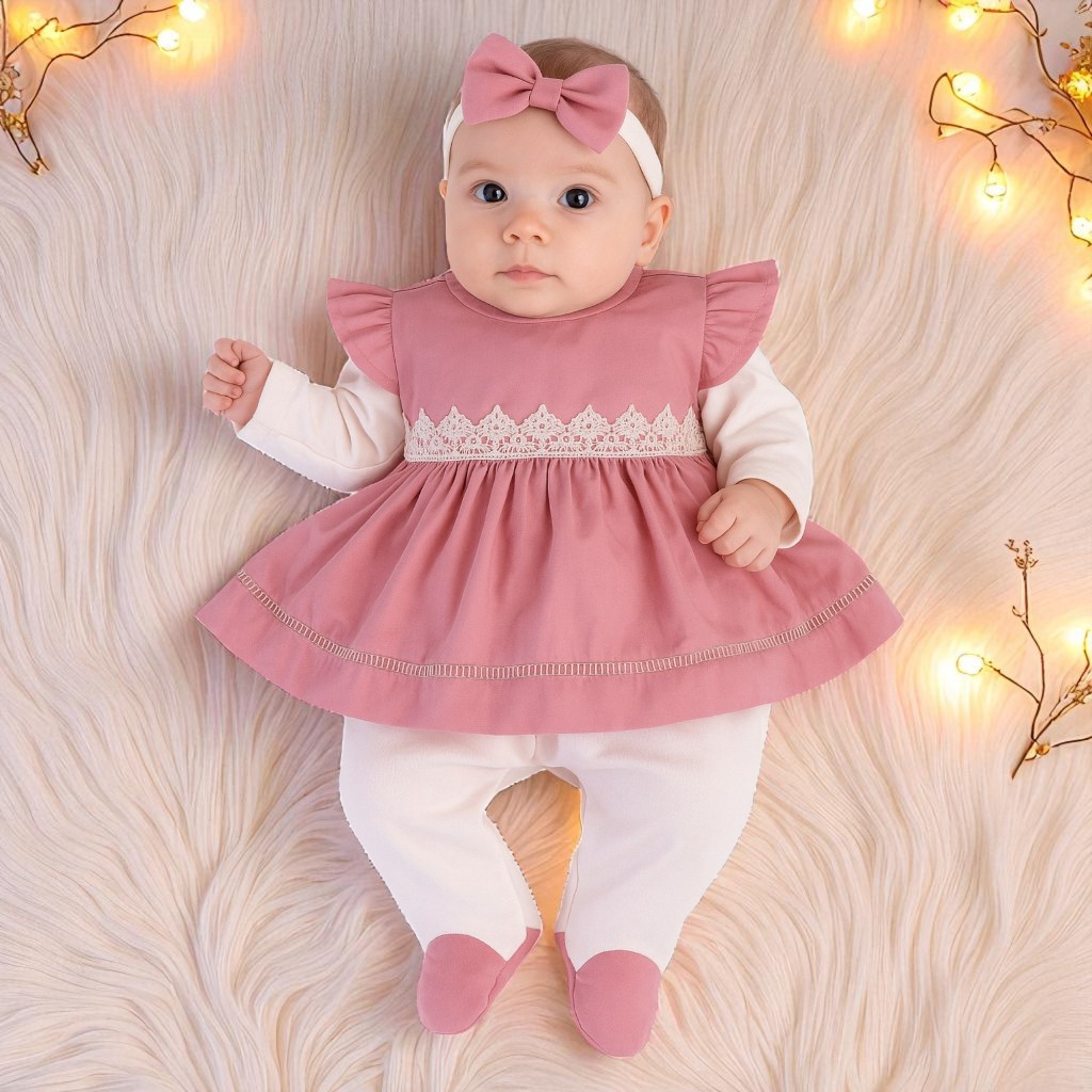 Saída Maternidade Menina 4 Peças Floral RN Alice Kit Algodão Macio para Recém-Nascida