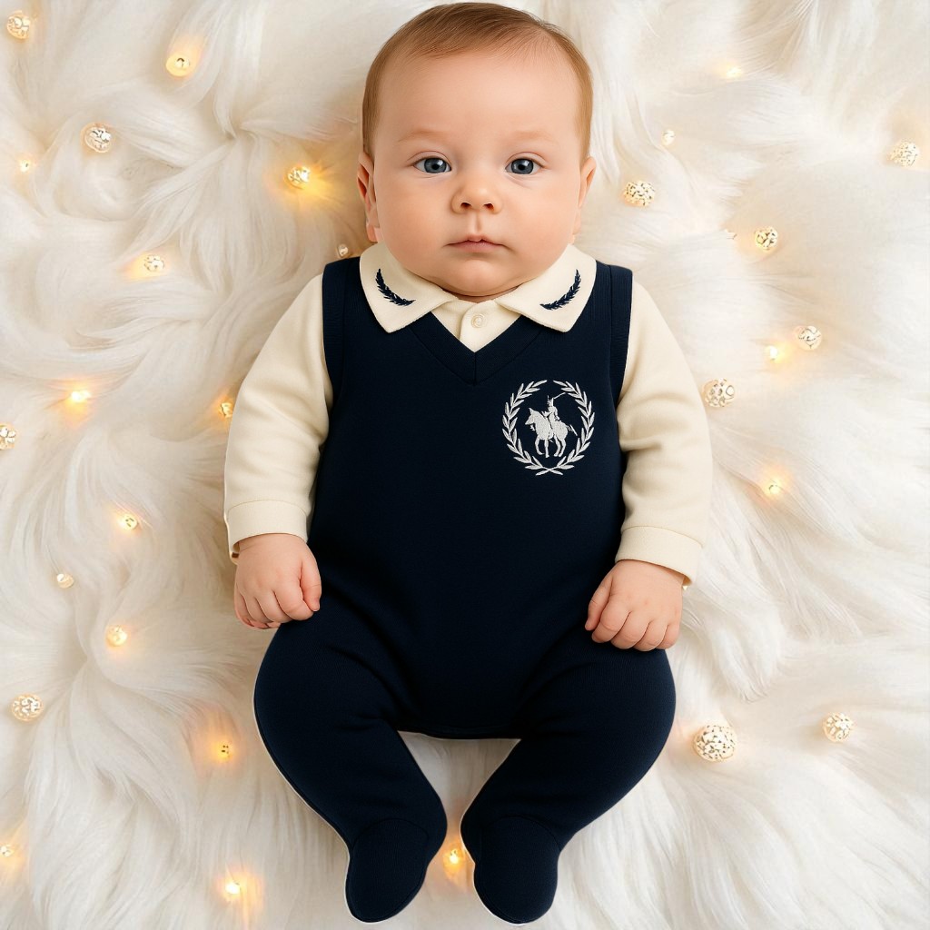 Saída Maternidade Menino 4 Peças Luxo com Macacão, Manta, Faixa e 100% Algodão RN