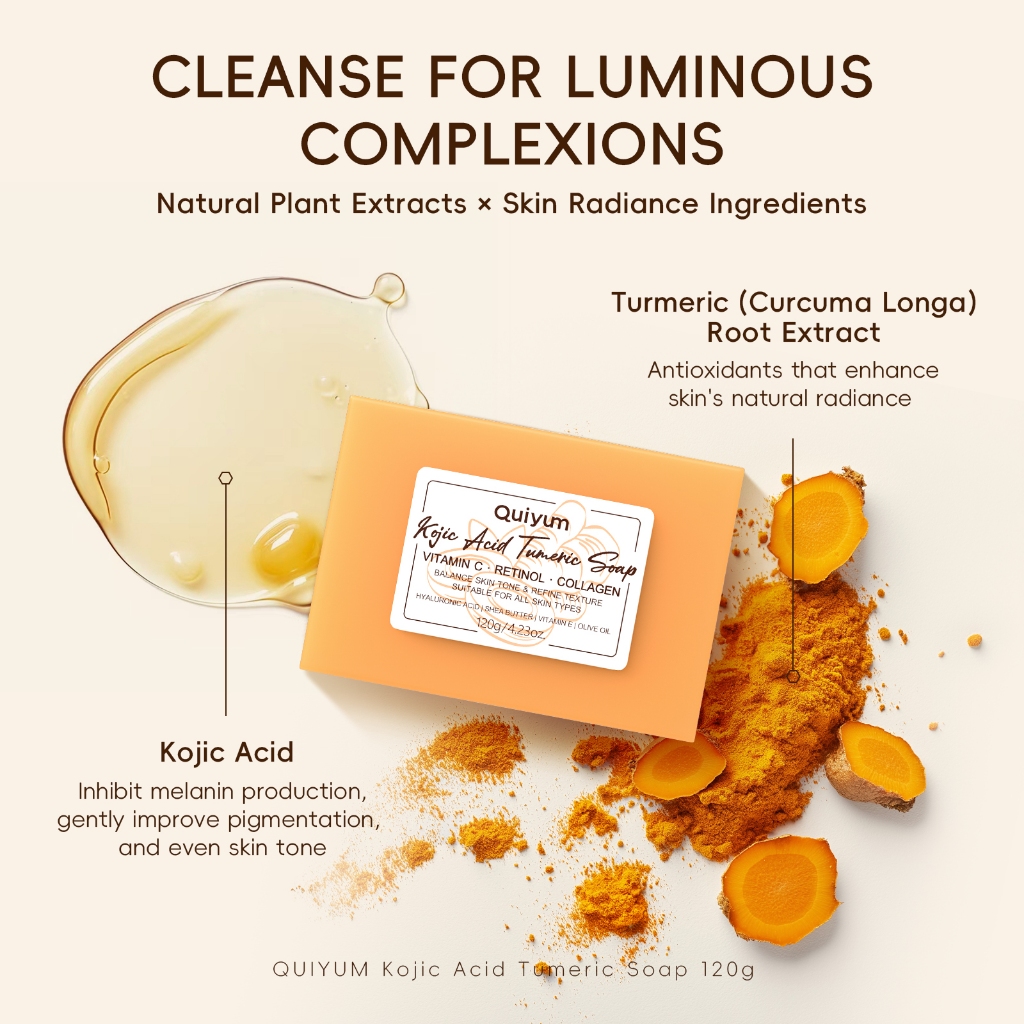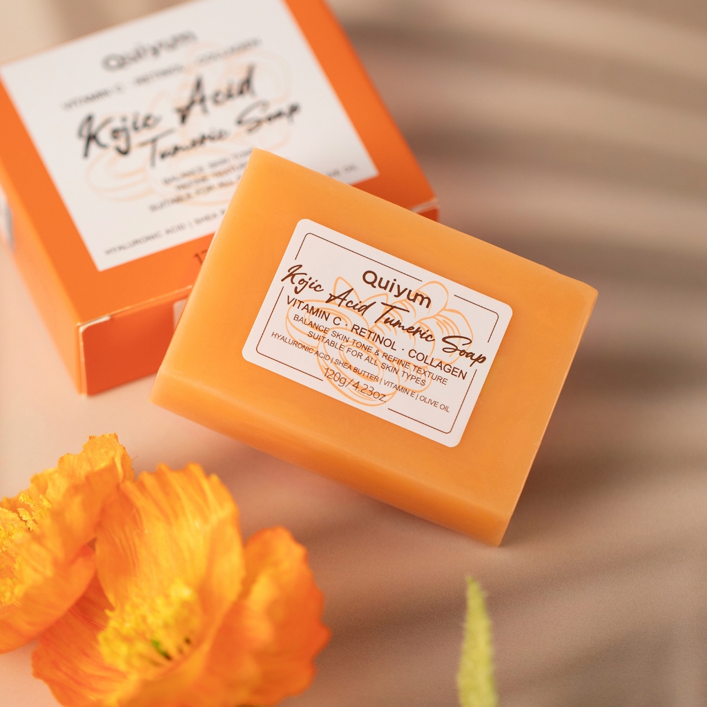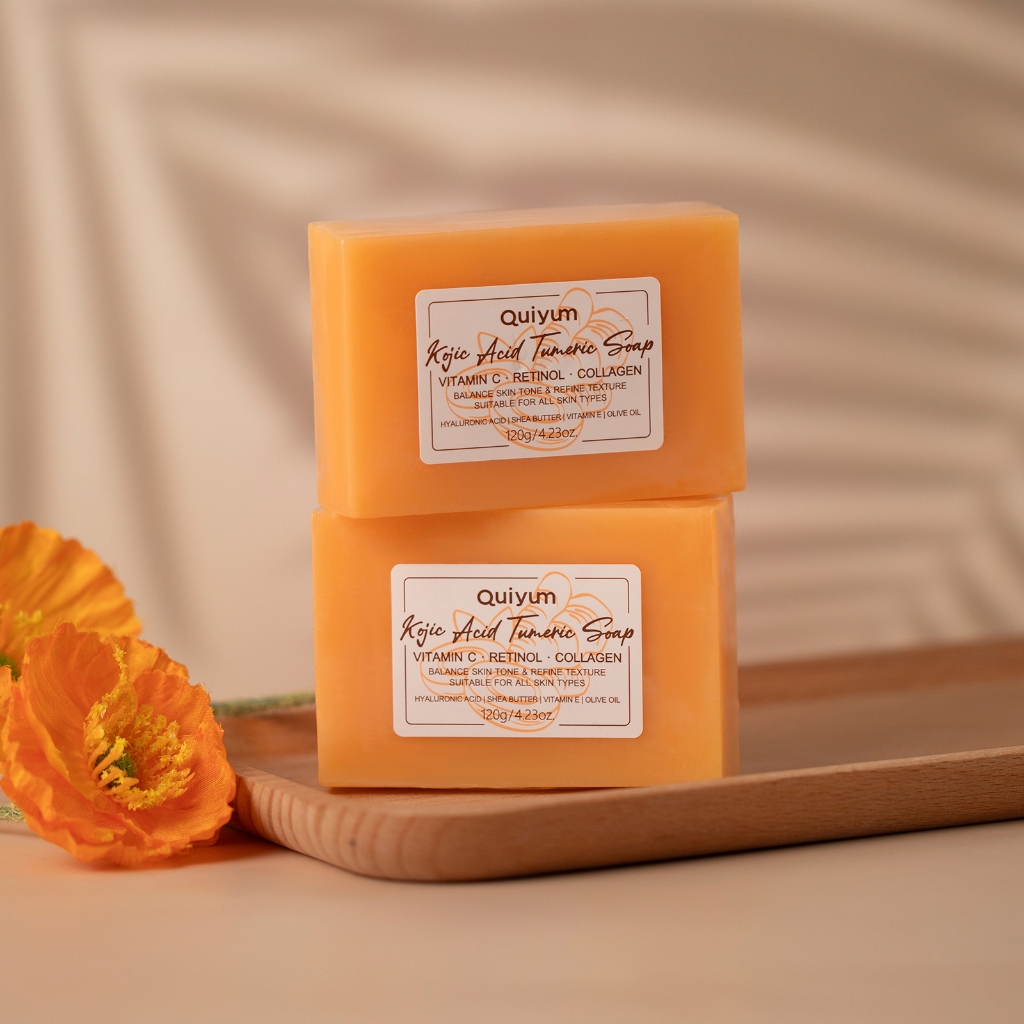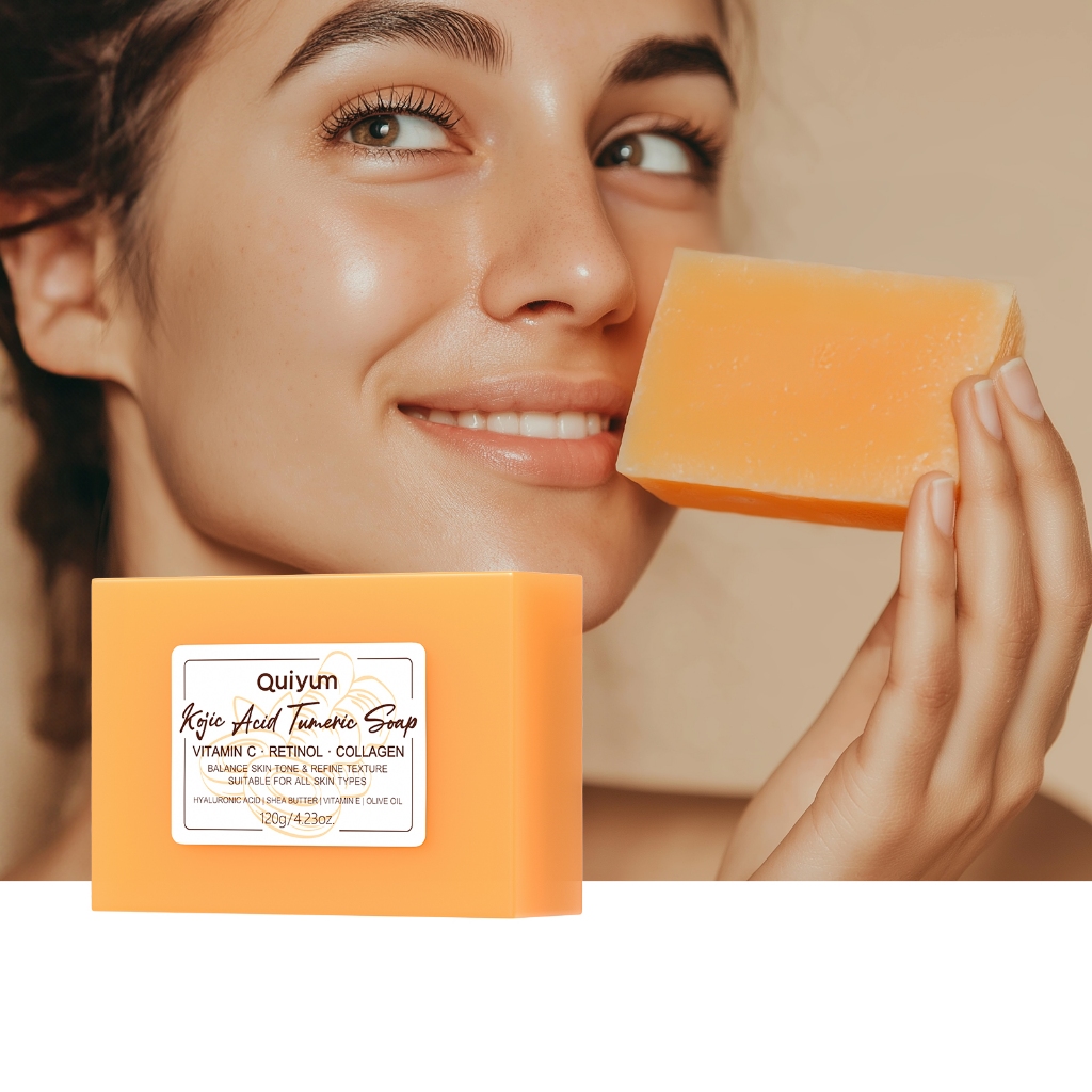 Sabão De Tumérico De Ácido KOJIC QUIYUM Refinar Textura Melhora O Equilíbrio Da Pele Áspera Tom 120g