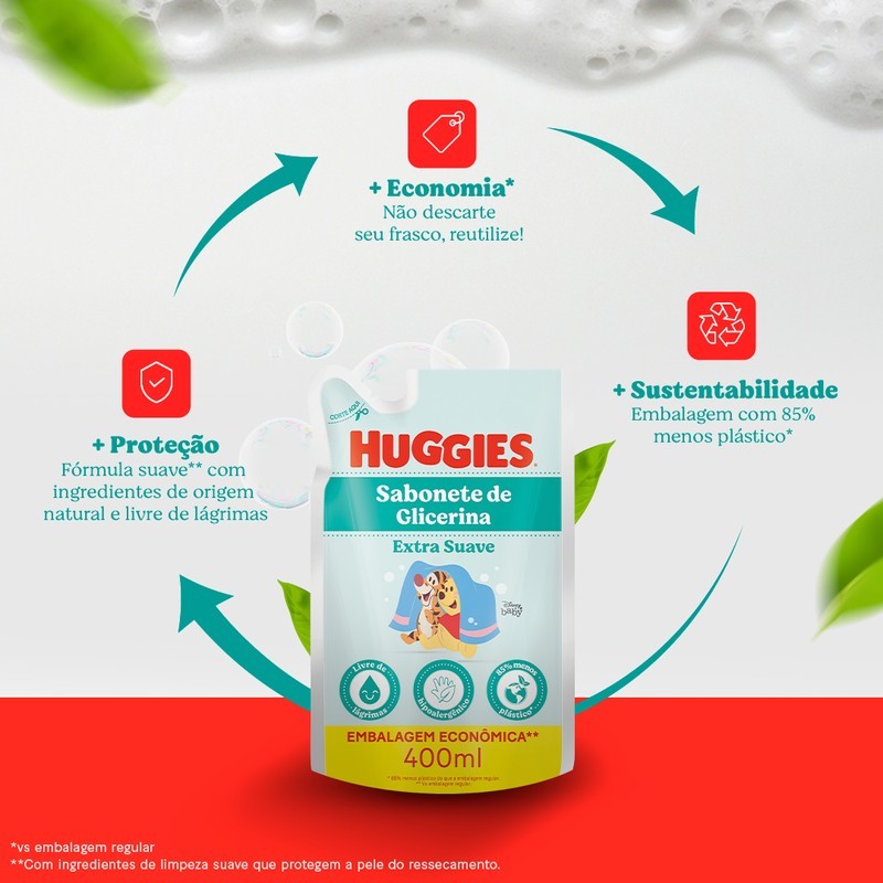 Sabonete Líquido Huggies Refil Extra Suave para bebê 400ml