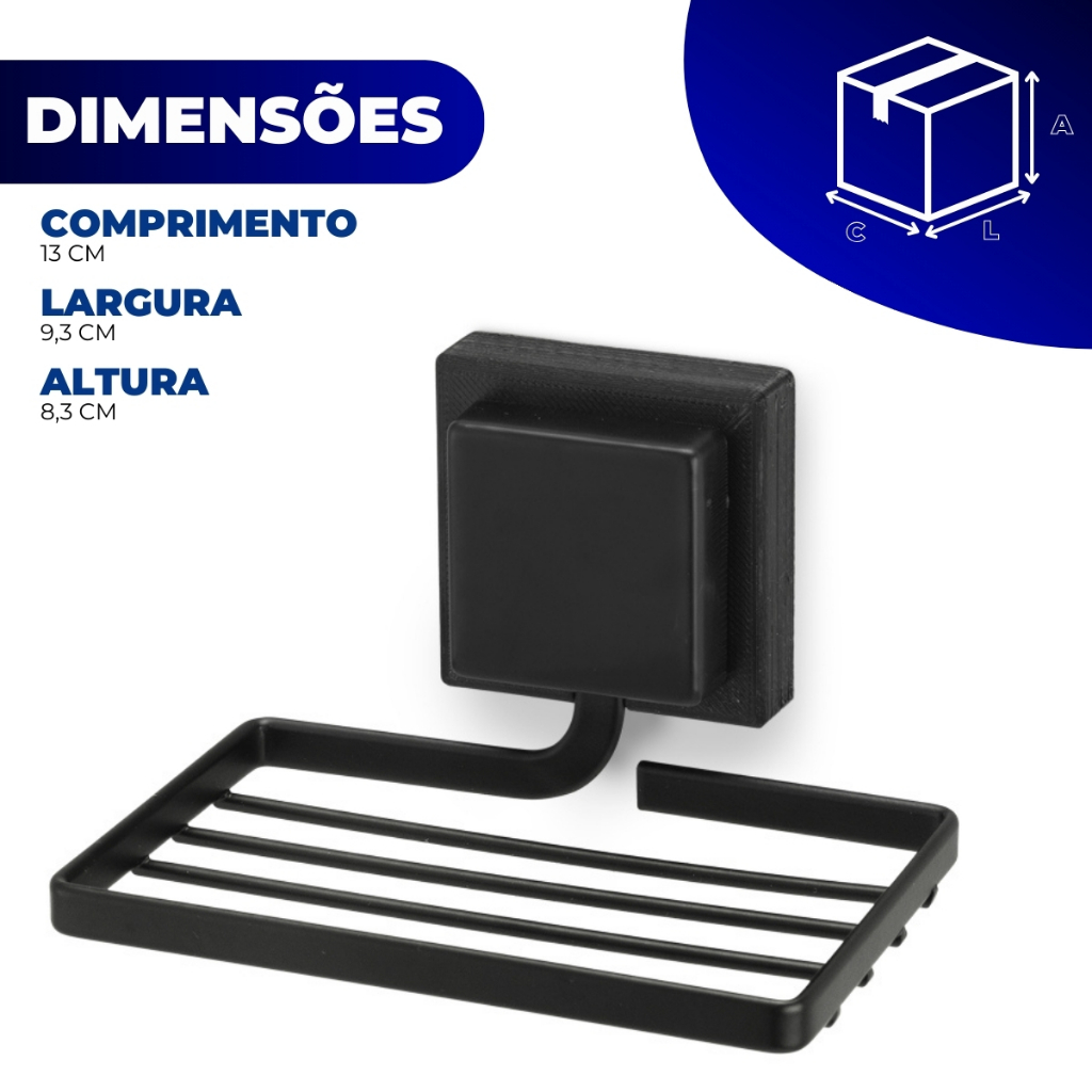 Saboneteira Banheiro Suporte Parede Porta Sabonete Fixação Dupla Face 3M Sem Furo Black Preto Arthi