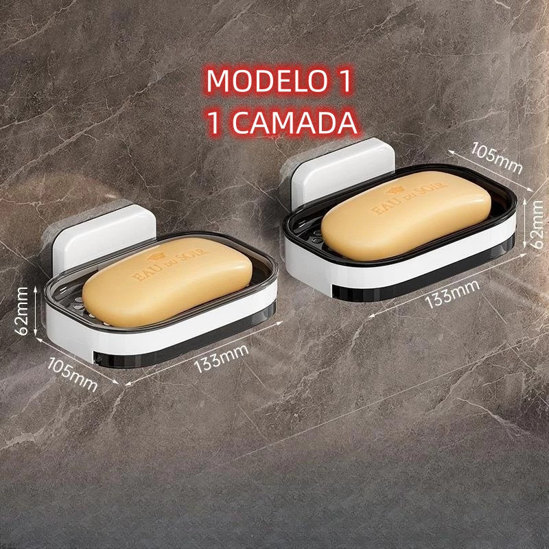 Saboneteira Drenável de Parede 2 Camadas - Organizador de Armazenamento Para Banheiro Com Suporte - WYL