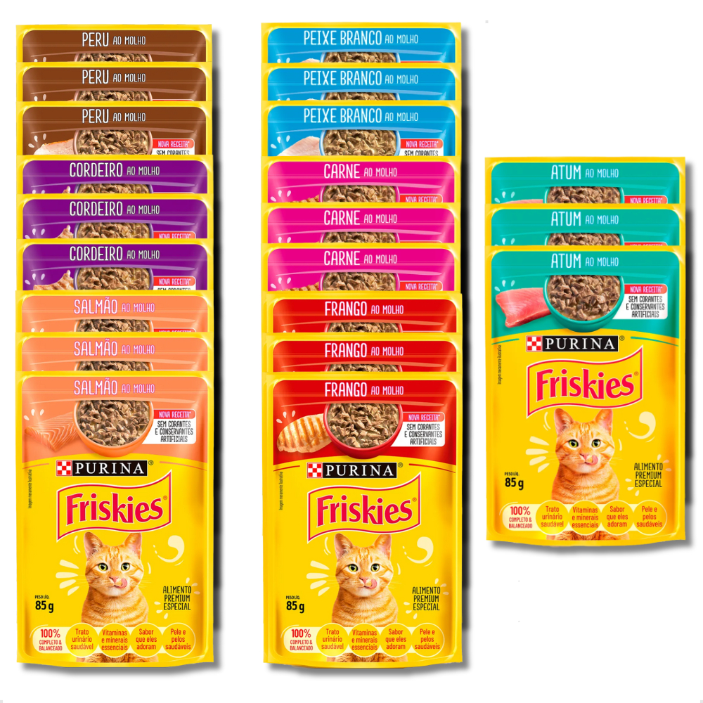 Sachê Friskies Gatos Ração Úmida 85g Sabores Sortidos Kit 14 ou 21 Sachês Purina