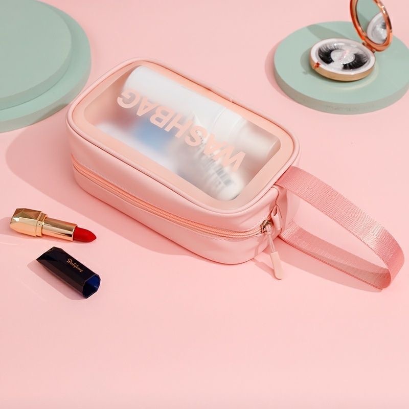 Saco Cosmético De Viagem Portátil De Maquiagem Transparente Organizador Para Meninas Mulheres Homens PU Couro