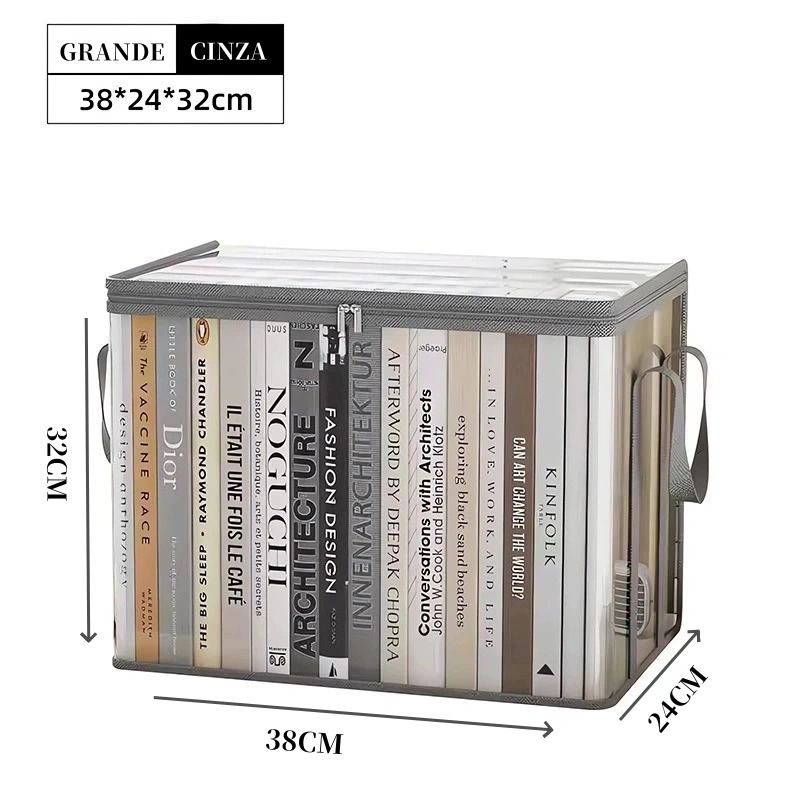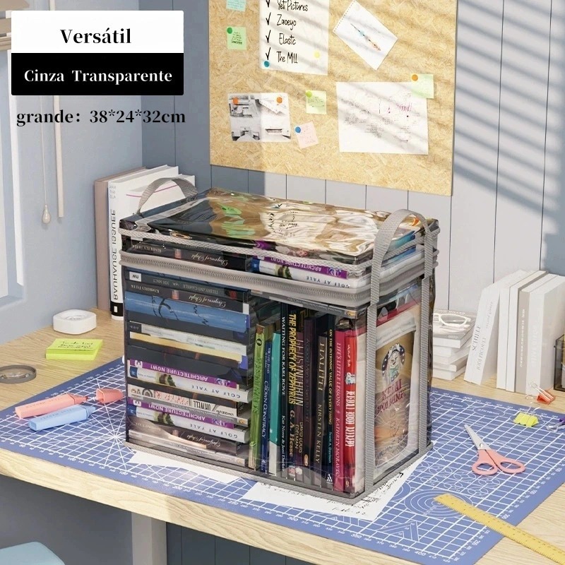 Saco De Armazenamento De Livros Recipiente De Coleção Transparente Estojo Empilhável Com Alça Organizador À Prova