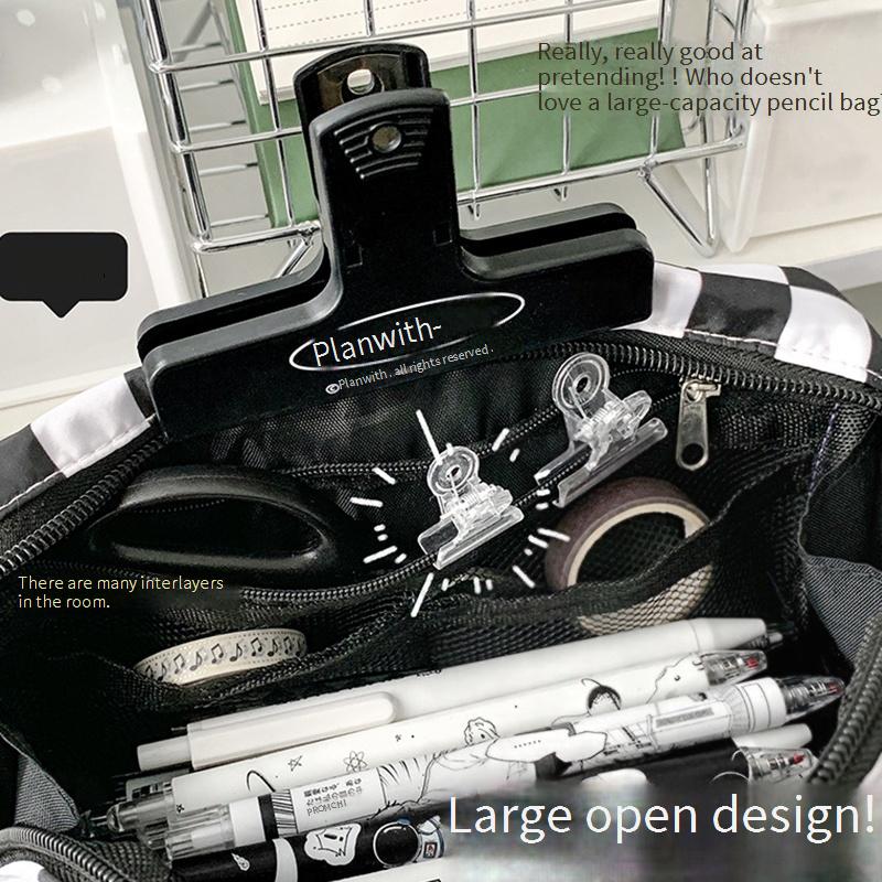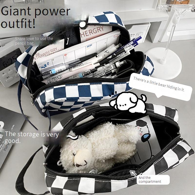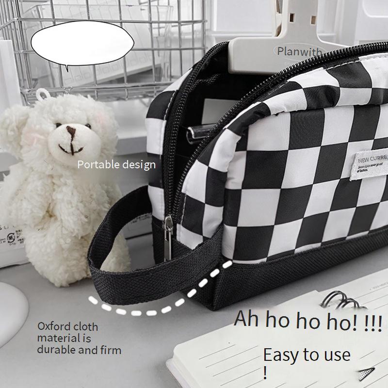 Saco De Lápis De Grande Capacidade Criativo Preto E Branco Grade Portátil Multifuncional Para Papelaria