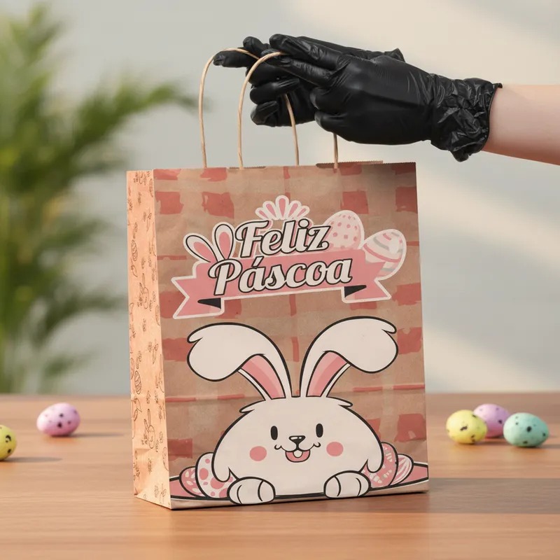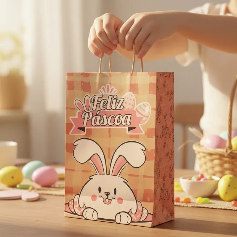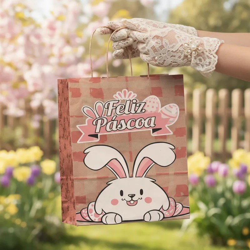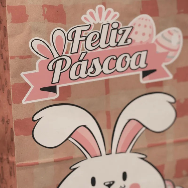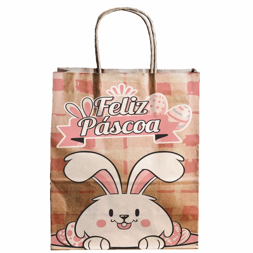 Sacola Kraft Feliz Páscoa (01) PP 18x10x25 - (10 Unidades)