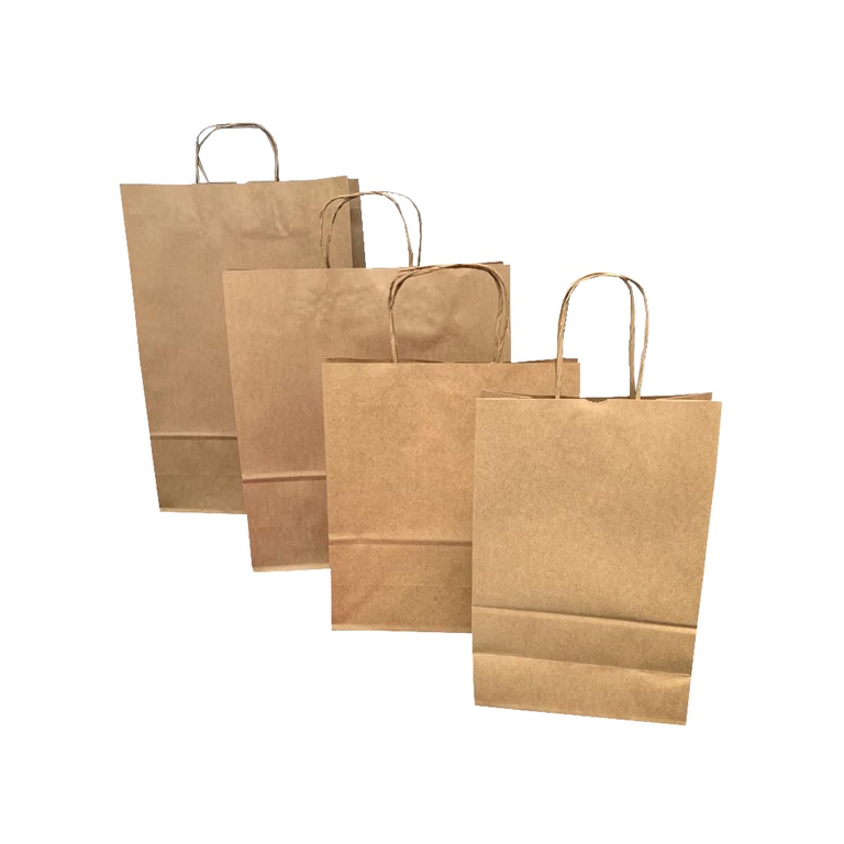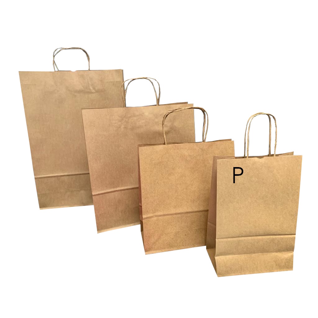 Sacola de Papel Kraft P - M - G - GG em Atacado Pardo Delivery com Alça (10 unidades e 25 unidades)