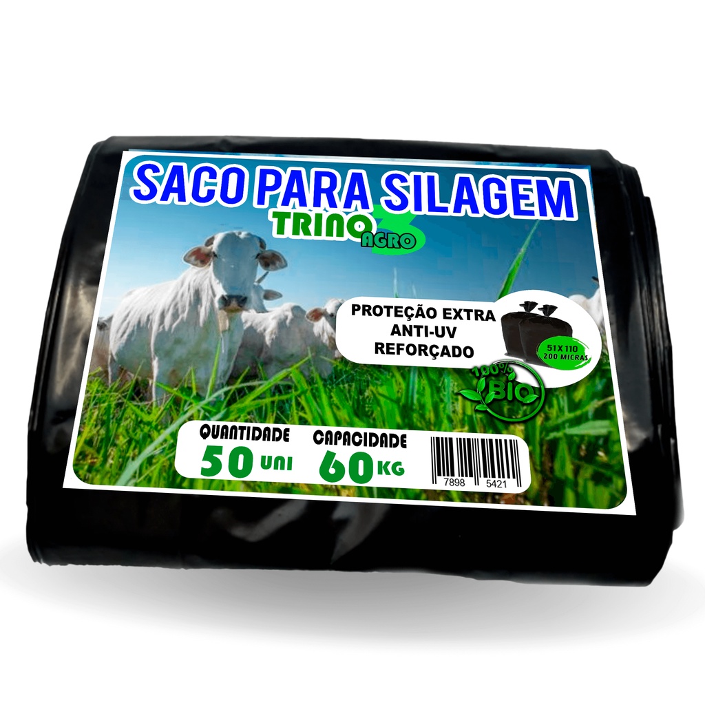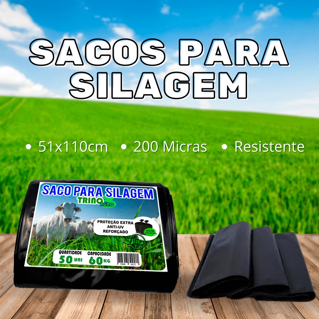 Sacos Para Silagem Preto 51x110 - 200 Micras C/50 Unidades Agricultura