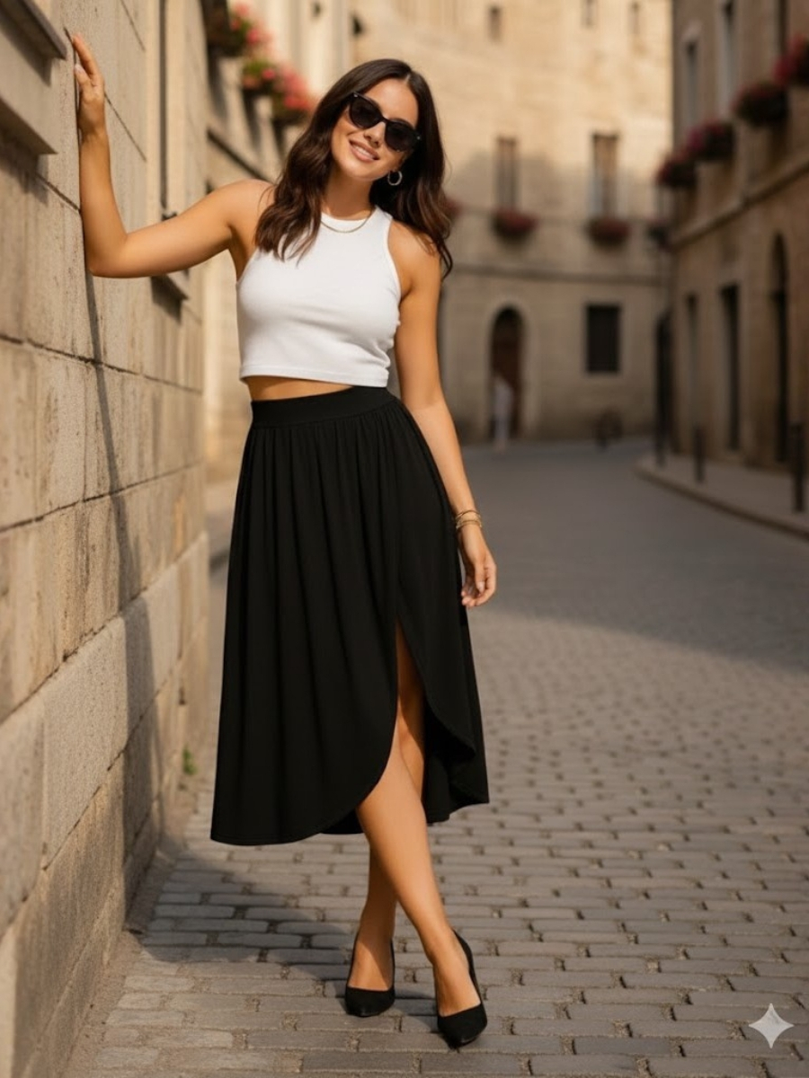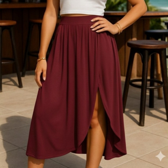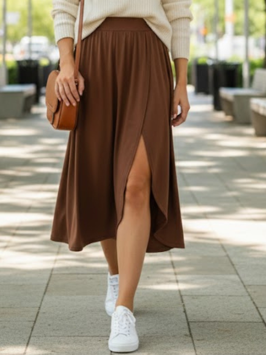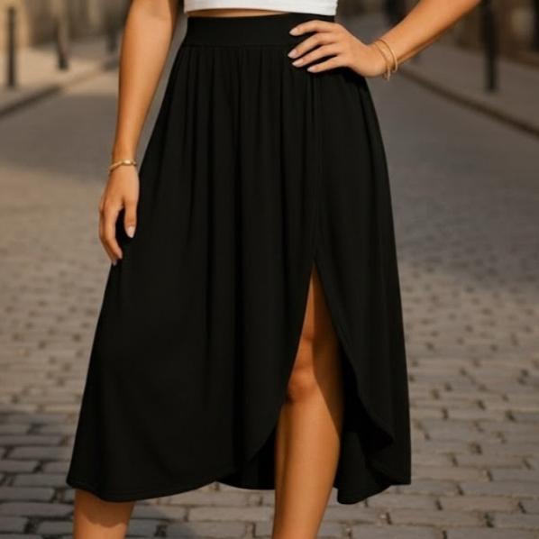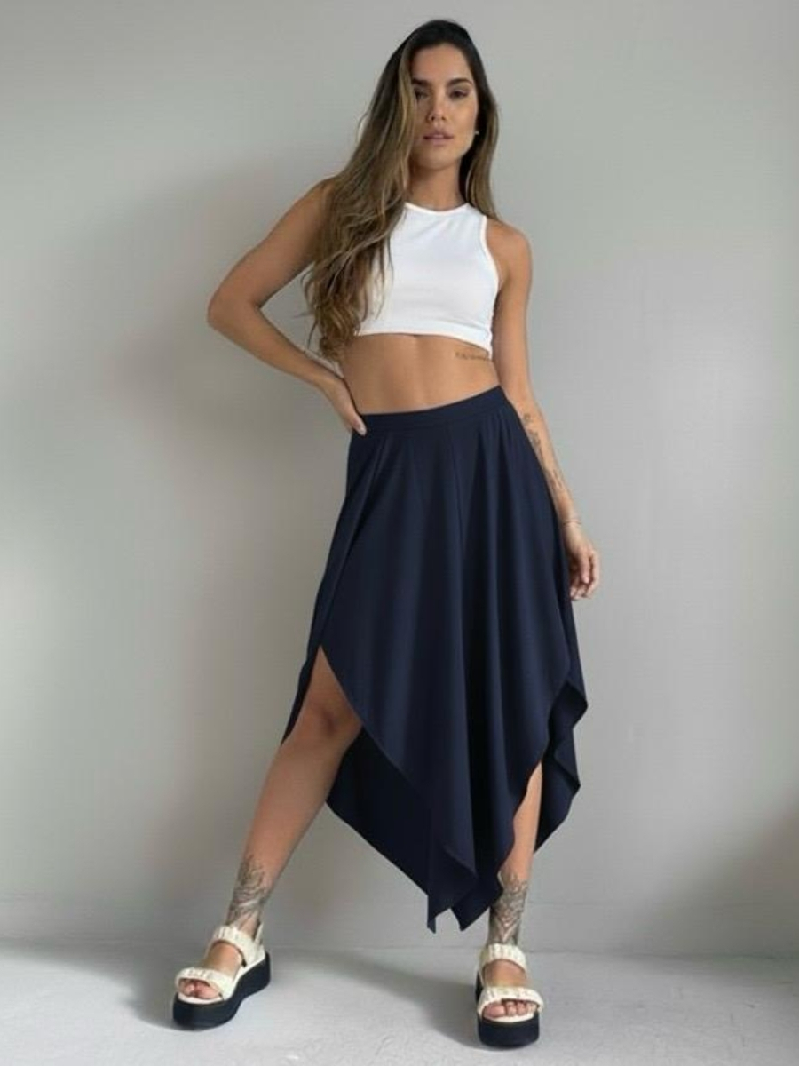 Saia Midi Malha Confortavel Fenda Lateral Moda Tendência
