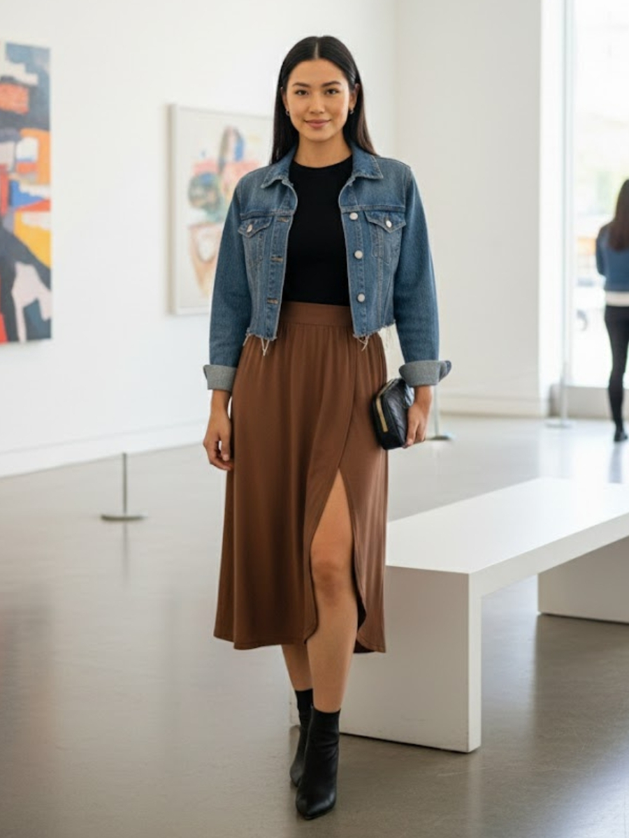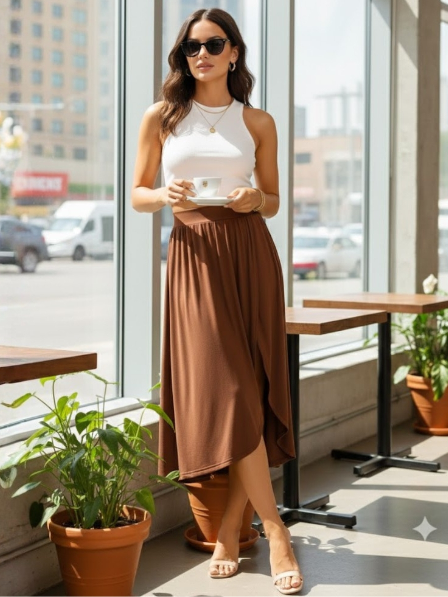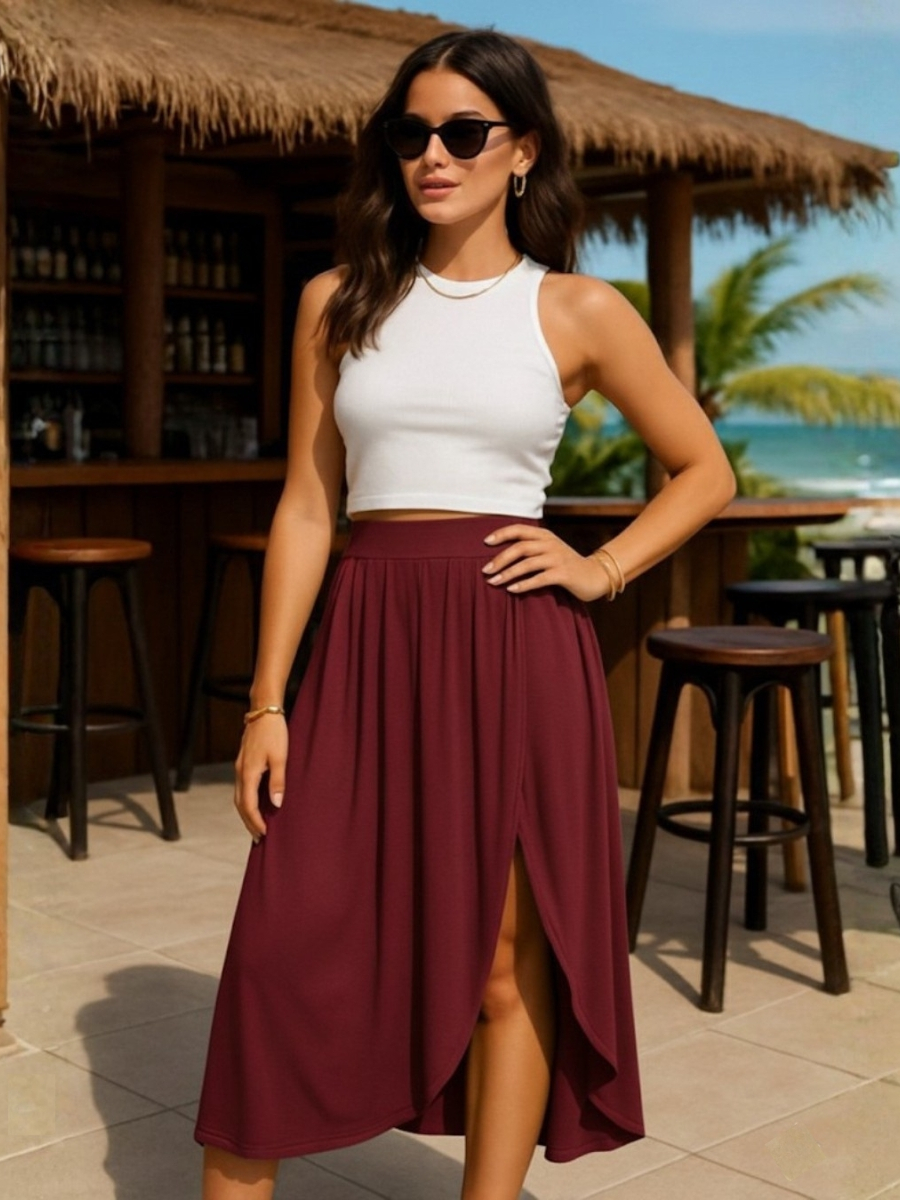 Saia Midi Malha Confortavel Fenda Lateral Moda Tendência