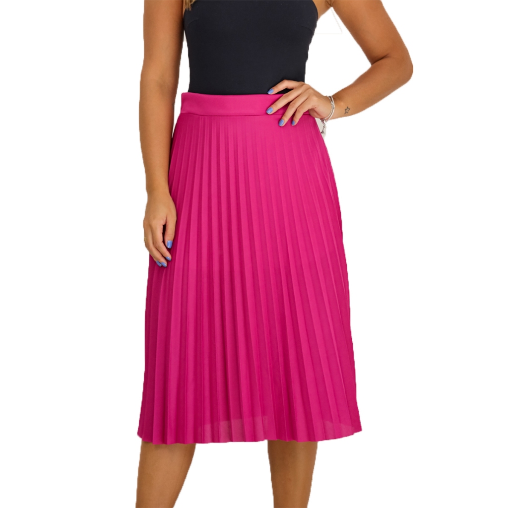Saia Plissada Midi Feminina Com Forro Lisa - Moda Evangelica *SAIA MIDI PLISSADA