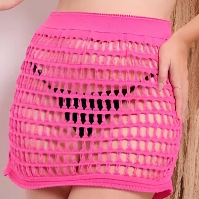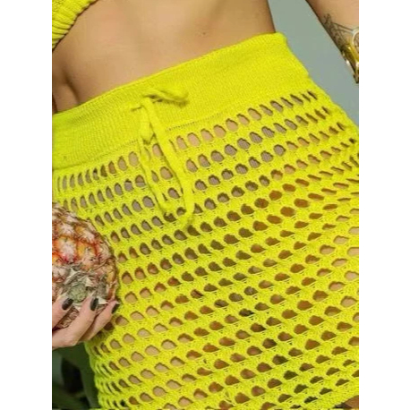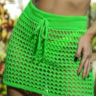 Saia Saída de Praia Curta Feminina em Tricot Amarração Cordão Regulável