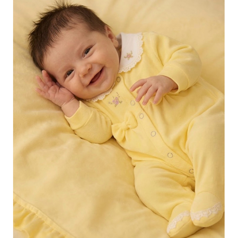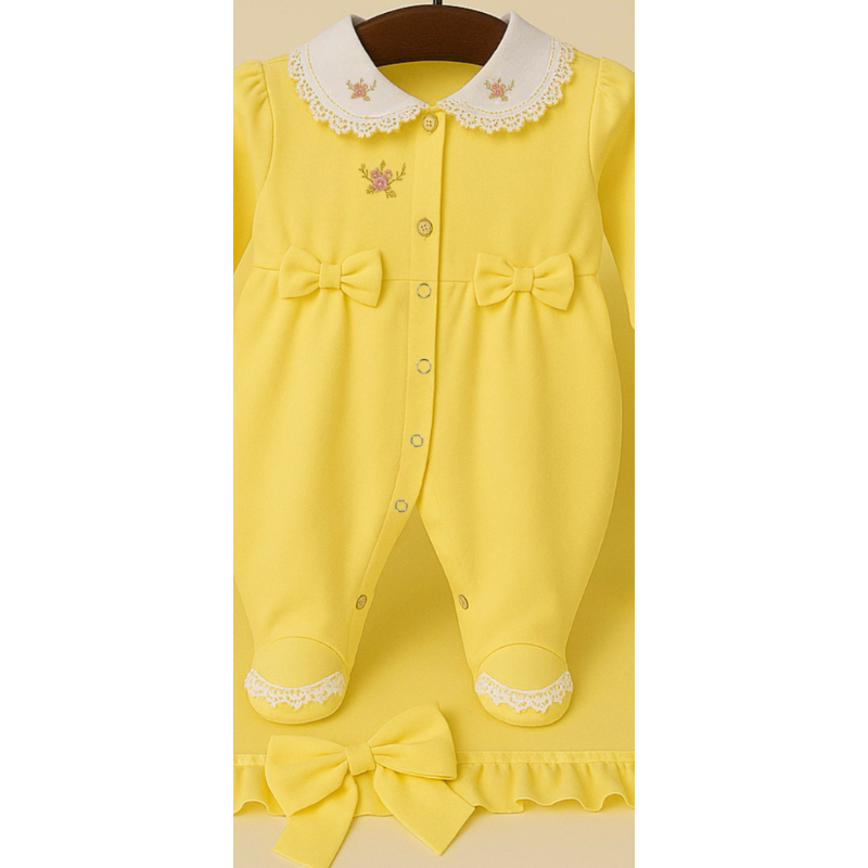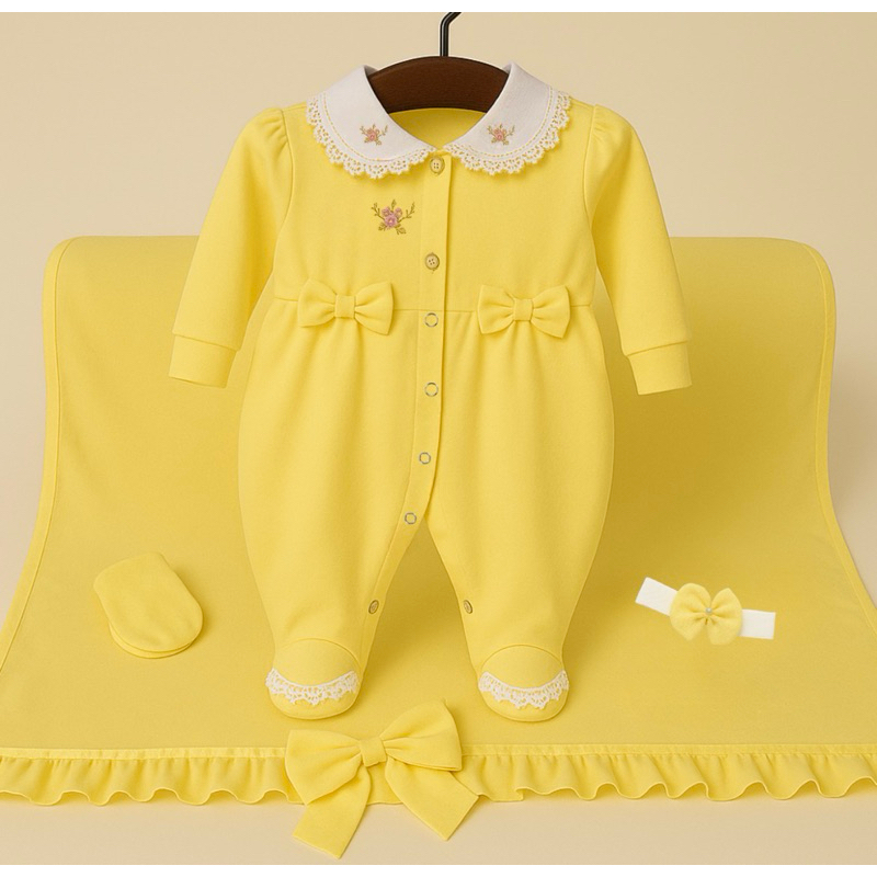 Saida De Maternidade amarelo Menina macacão primeira roupa bebê look saída enxoval menina