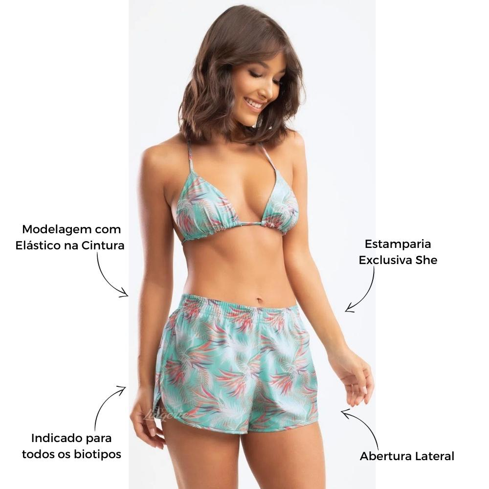 Saida de Praia Short Feminino Curto com Fenda Lateral Soltinho Elastico Acinturado Estampas Verao