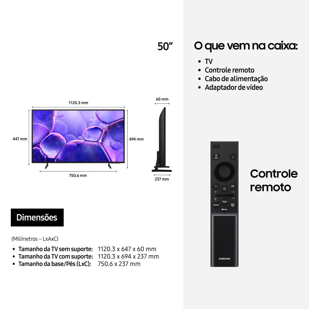 Samsung Smart TV 50" Crystal UHD 4K U8100F 2025, Xbox Cloud Gaming, Canais Gratuitos, Alexa