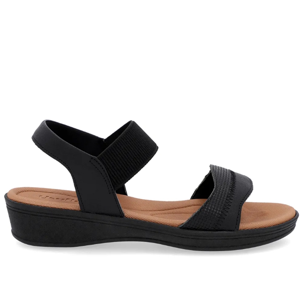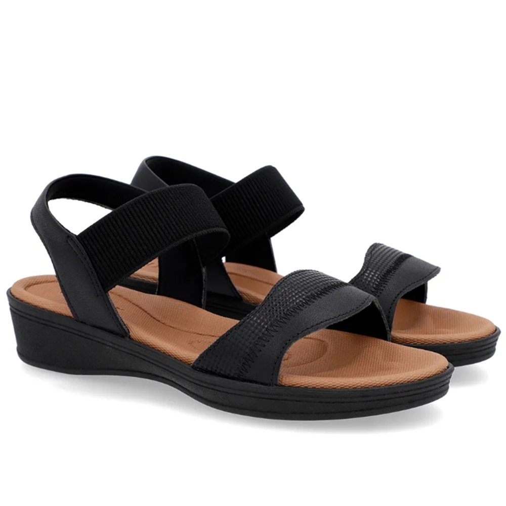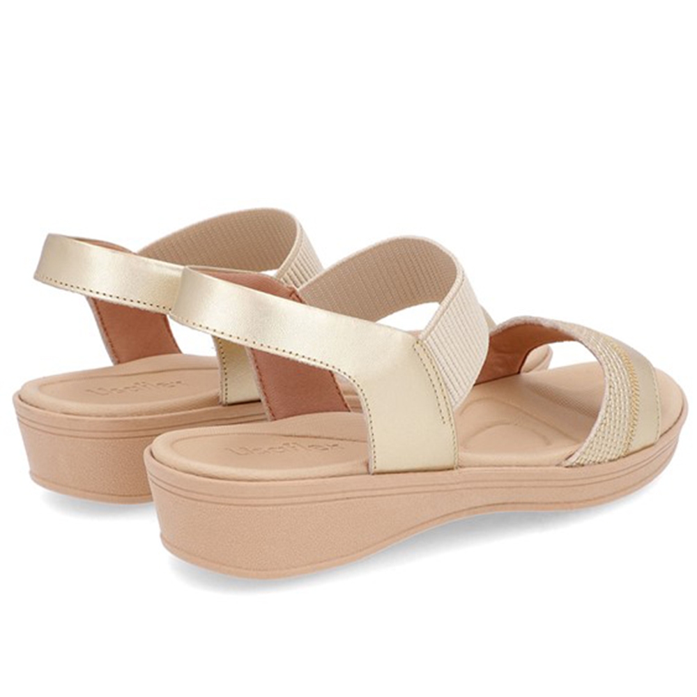 Sandália Baixa Plataforma Couro Dourada Ajuste Elástico