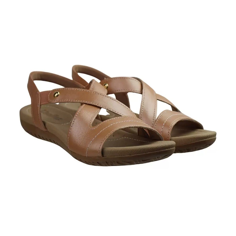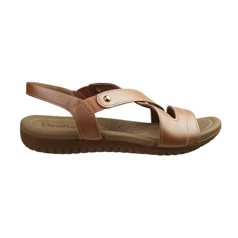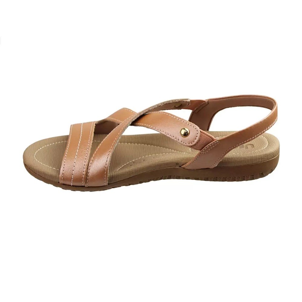 Sandália Fem Usaflex Couro Elástico Marrom Claro R1804148