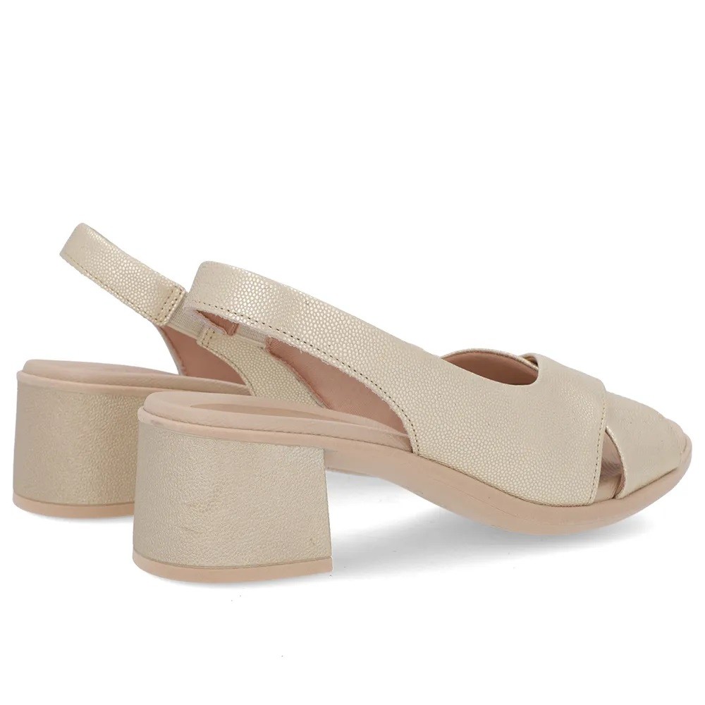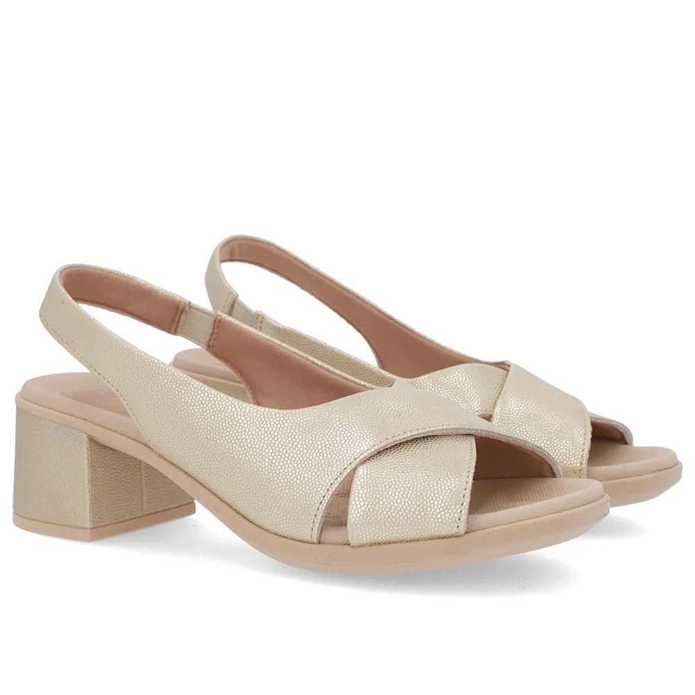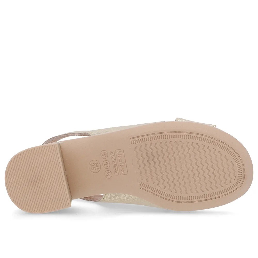 Sandália Fem Usaflex Couro Salto Bloco Dourado UC0205004