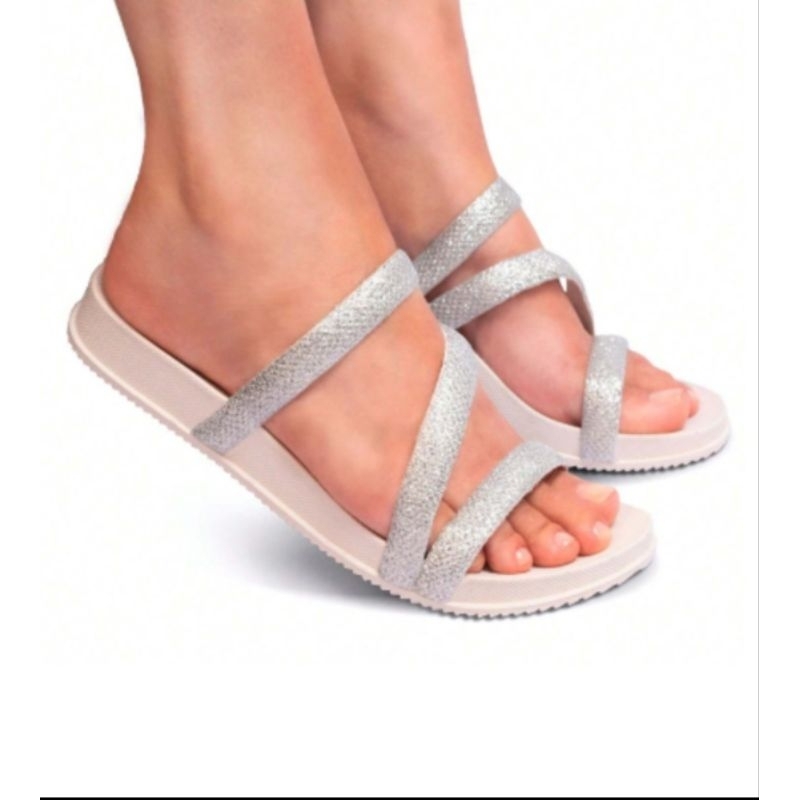 Sandália Feminina Birken Rasteira Confortavel Plataforma Brilho Preto