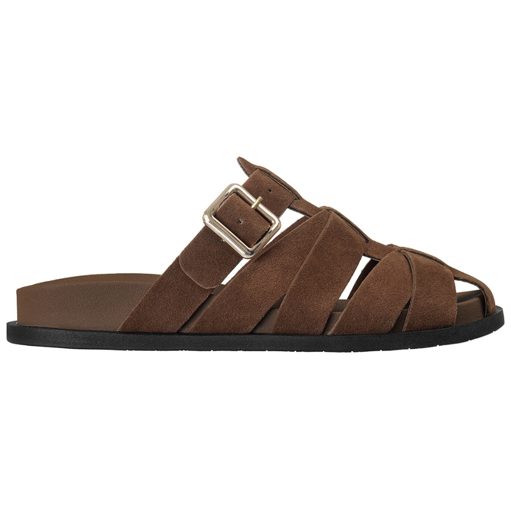 Sandália Feminina Papete Clog Tiras Camurça Fivela Lateral Casual Moderno GiGiL