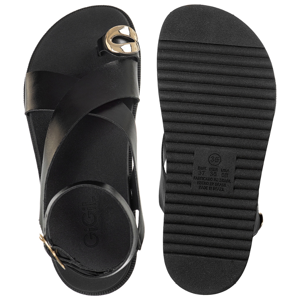 Sandália Feminina Papete Tiras Largas X De Dedo Detalhe Metalizado Boho GiGiL