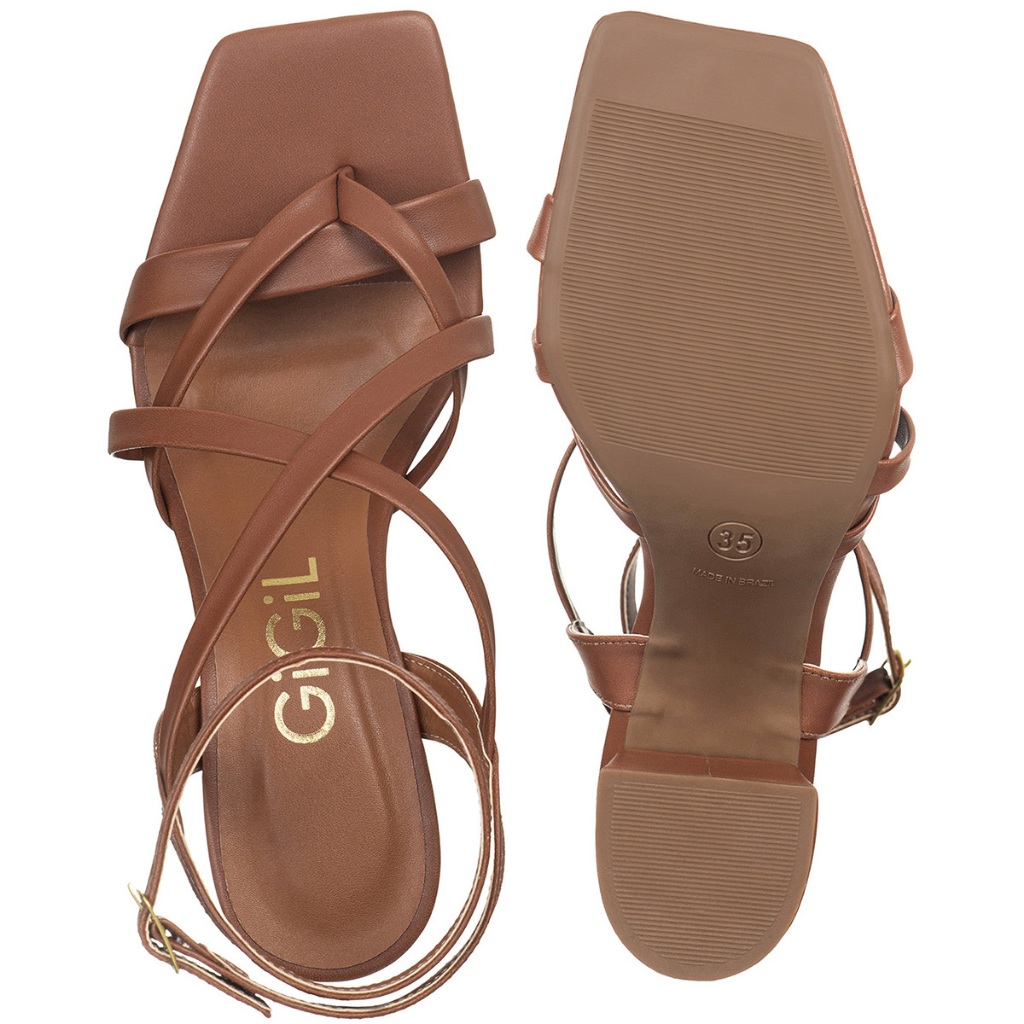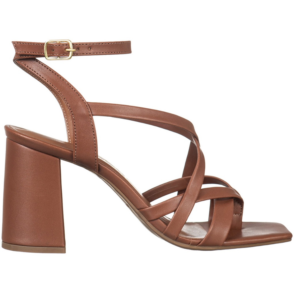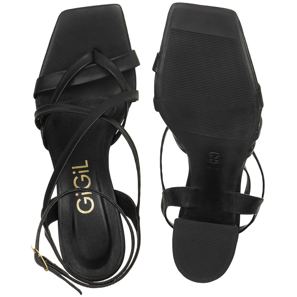Sandália Feminina Salto Alto Bloco Bico Quadrado Tiras Cruzadas Fivela Lateral Casual Moderno GiGiL