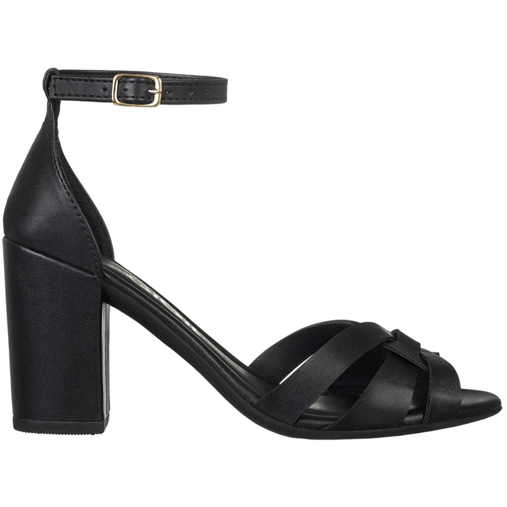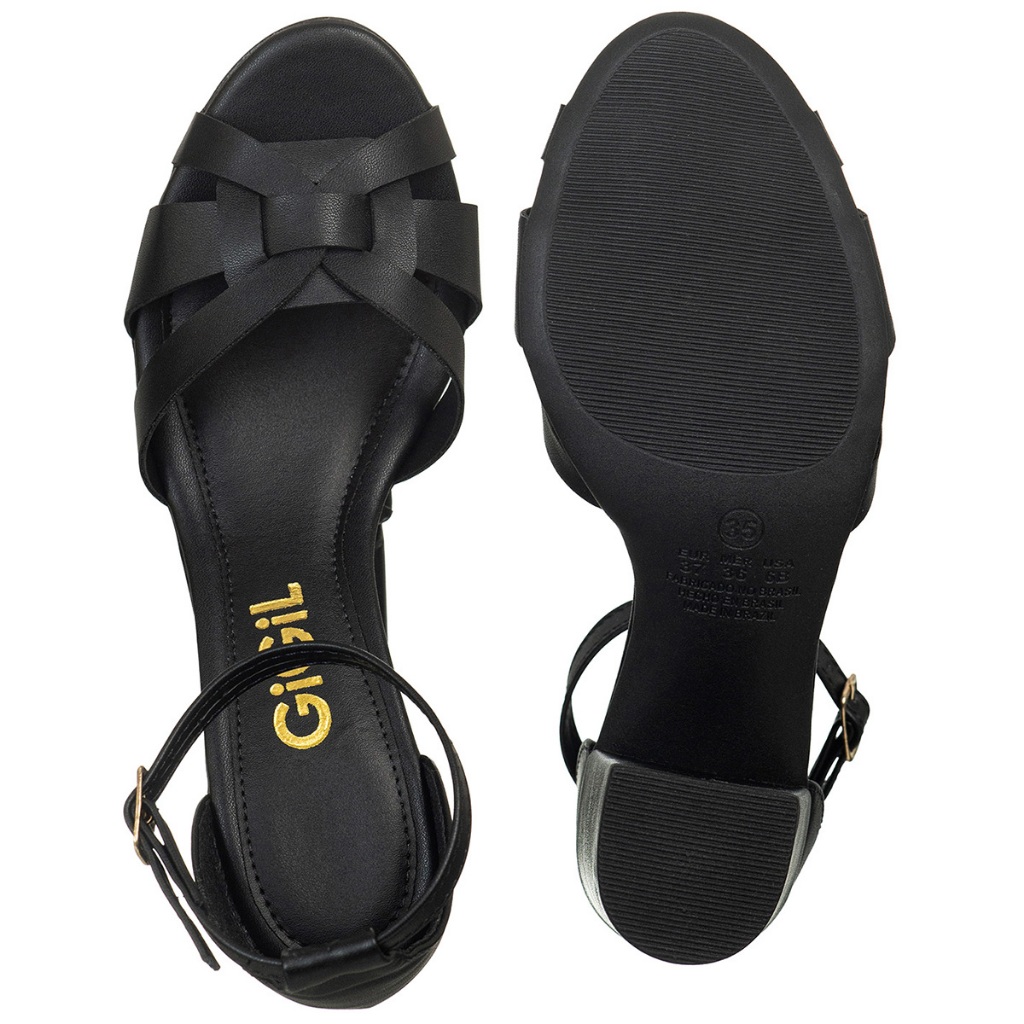 Sandália Feminina Salto Alto Bloco Tiras Entrelaçadas Traseiro Fechado Conforto Elegante GiGiL