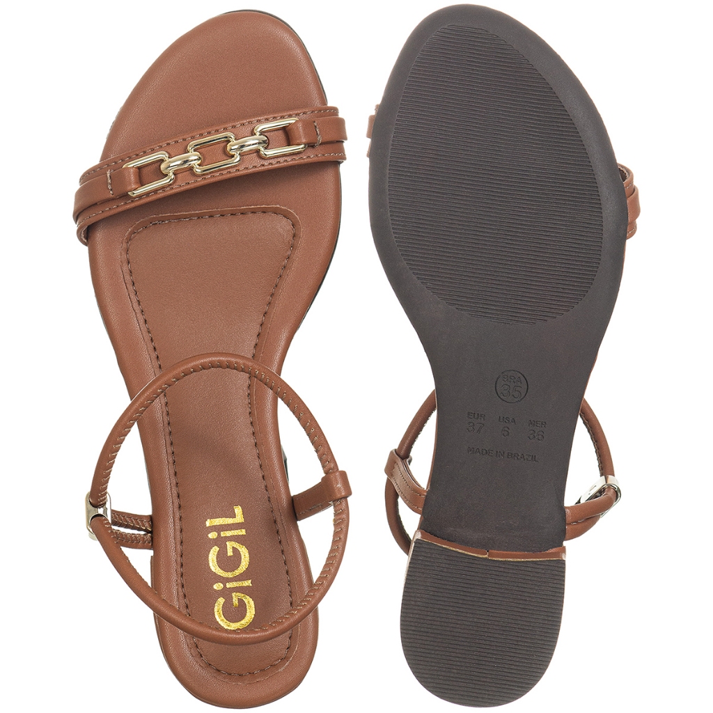 Sandália Feminina Salto Baixo Tira Fina Corrente Dourada Confortável Elegante GiGiL