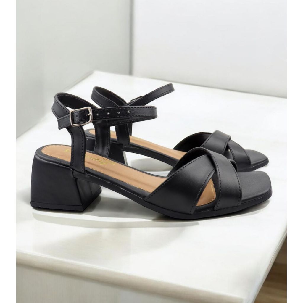 Sandália Feminina Social Salto Baixo Bloco Palmilha Macia Cores Nude,Preto,OffWhite,Vermelho
