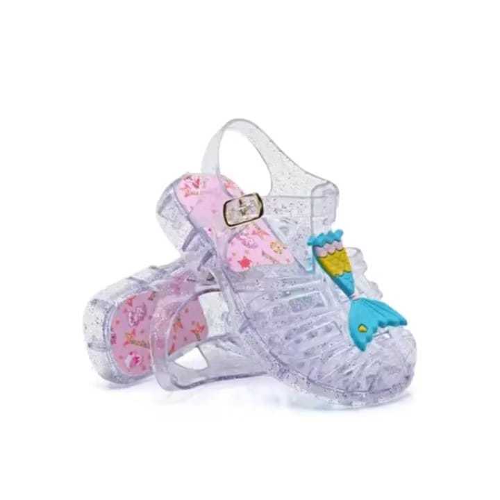 Sandália de Menina Rosa Infantil Com Brilho Desenho Sereia Princesa Transparente