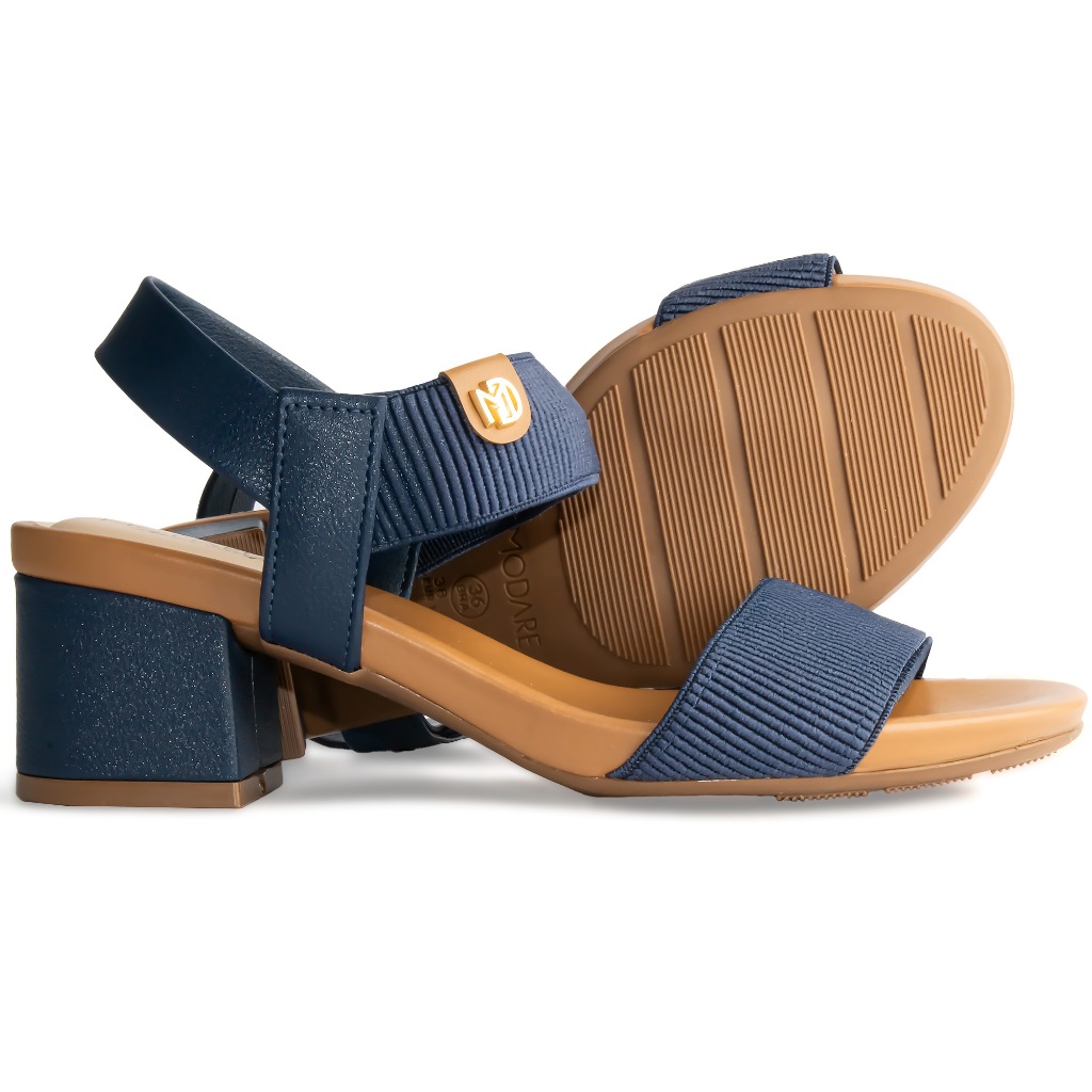 Sandália Modare Salto Bloco Grosso Baixo Confortável Original 7187 Marinho