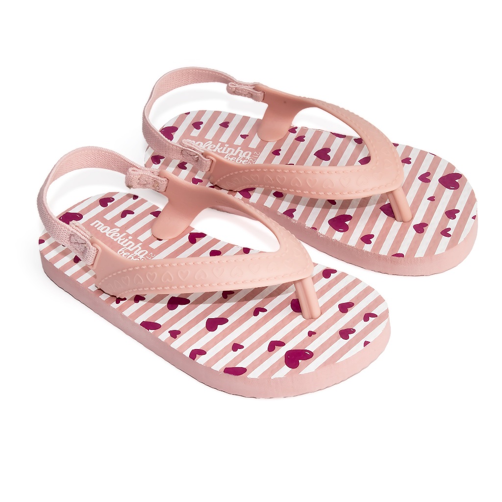 Sandália Molekinha Menina Infantil Chinelo Bebê Confortável Rosa e Branco
