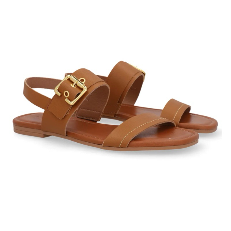 Sandália N35 Couro Marrom Tan Usaflex Feminina