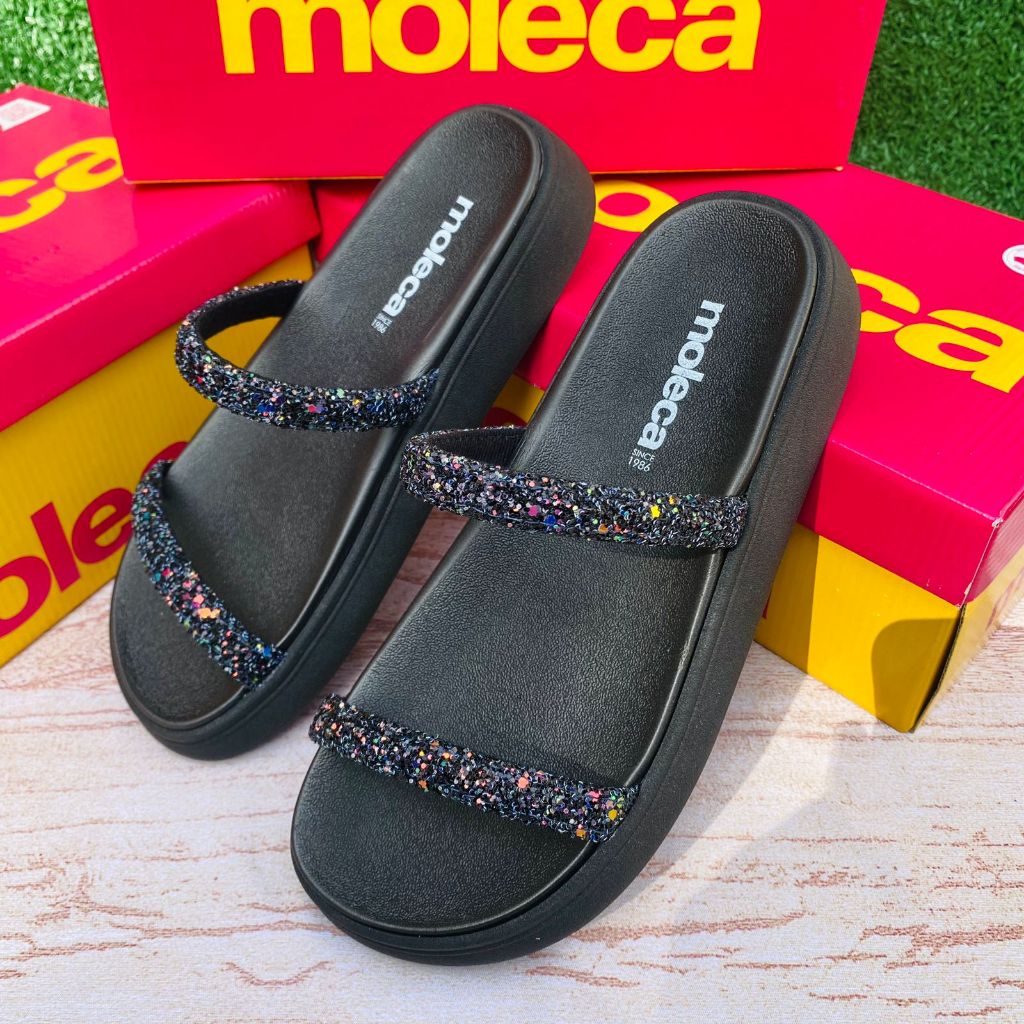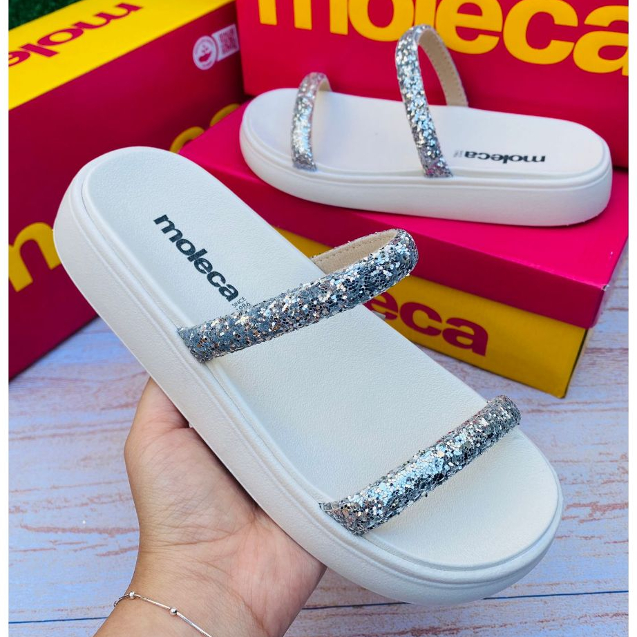 Sandália Papete Feminina Moleca Brilho Glitter Confortável Moda Verão Estilo Casual Leve Dia a Dia
