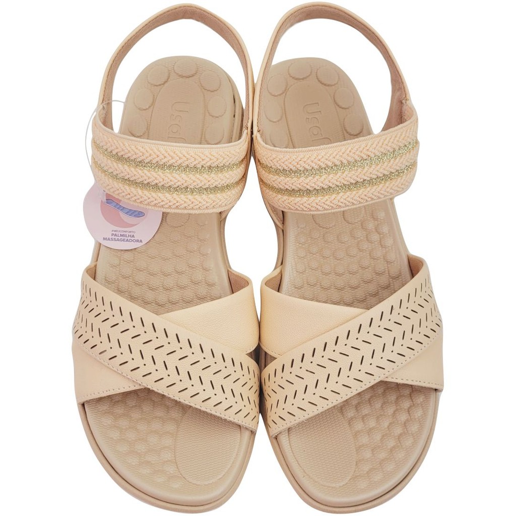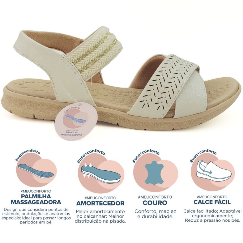 Sandália Papete Usaflex Baixa Couro Elástico Conforto Plantar Amortecedor Palmilha Massageadora