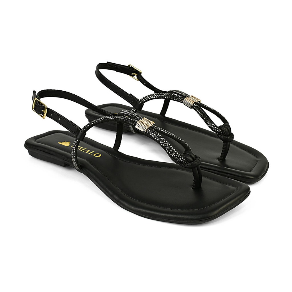 Sandália Rasteira Feminina Bico Quadrado VLRAST03 - Fecho ajustável