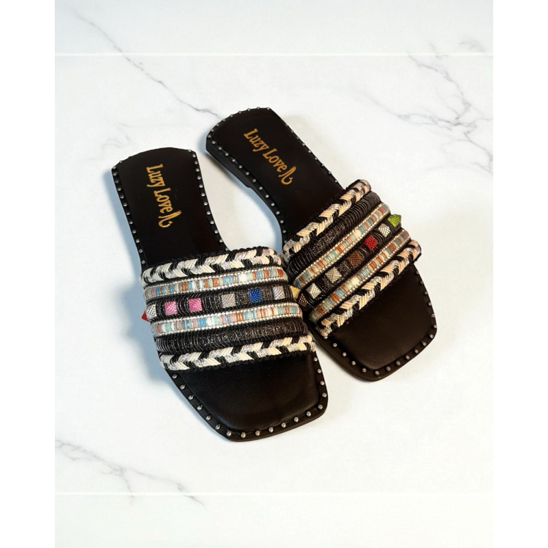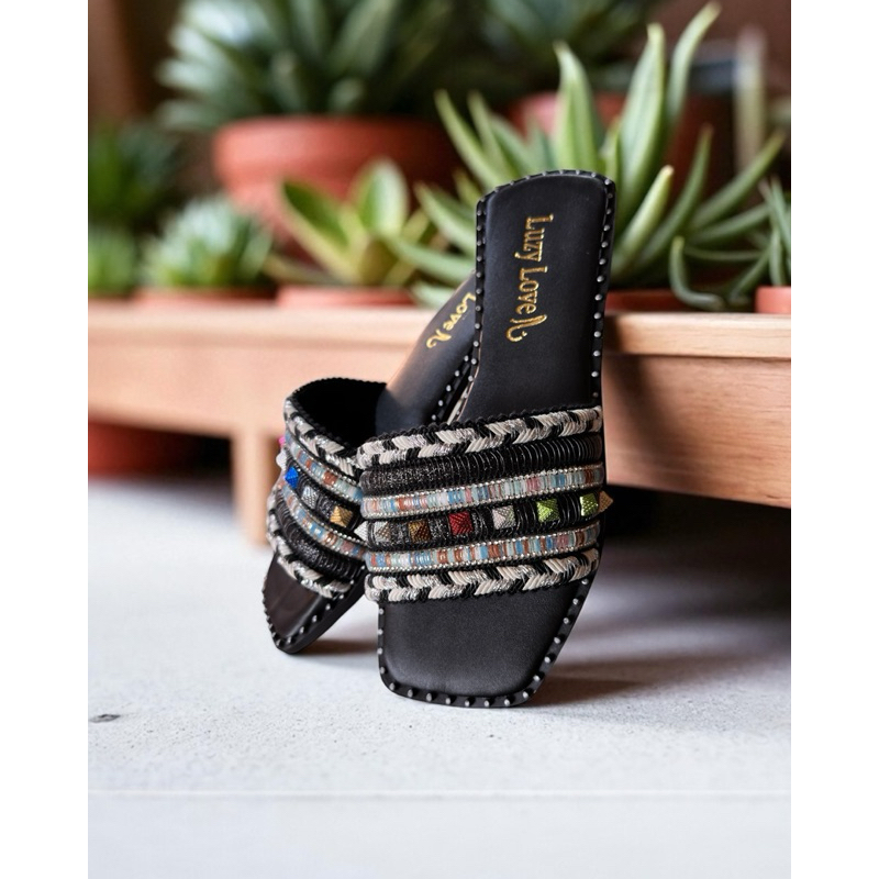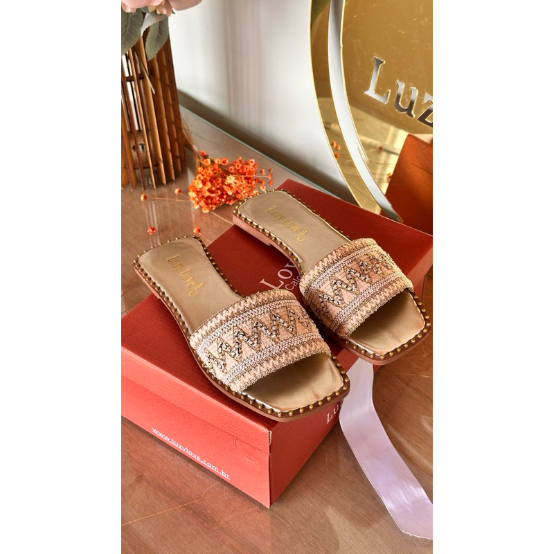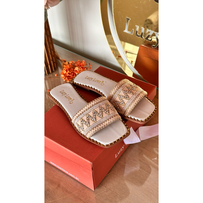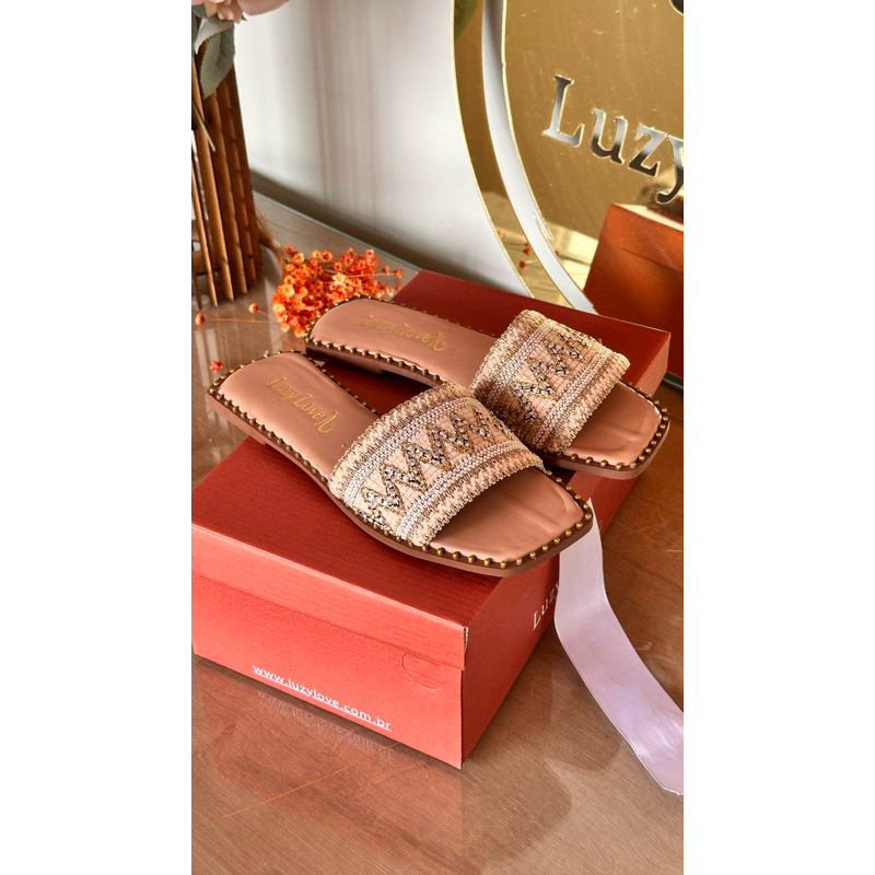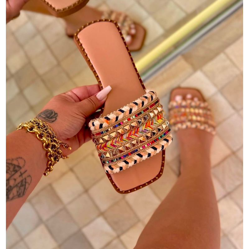 Sandália Rasteira Feminina Boho Chic com Tiras Bordadas | Chinelo Casual Confortável Verão 2026