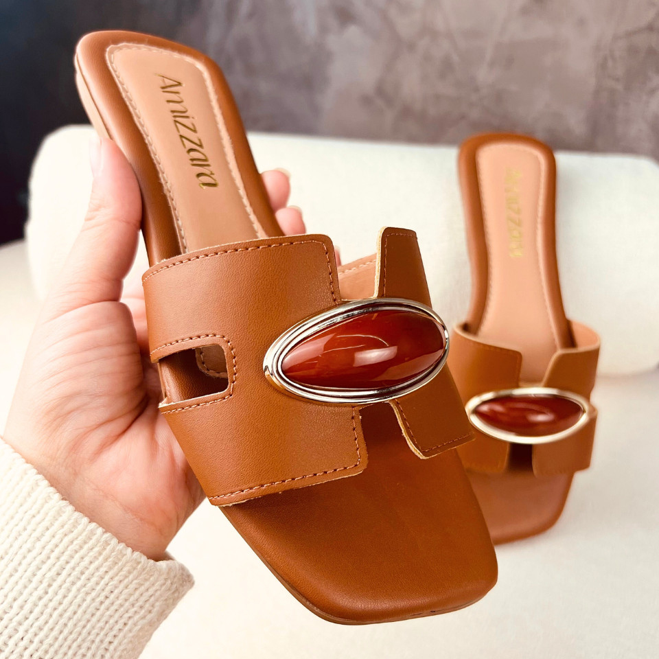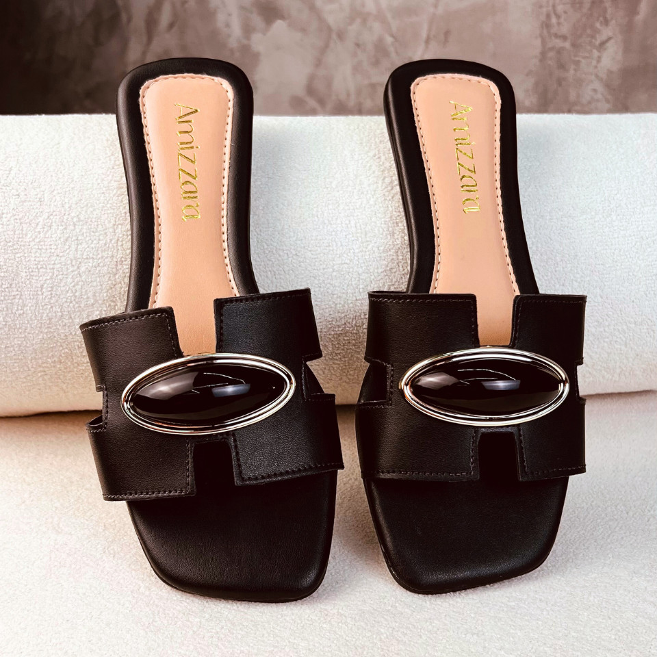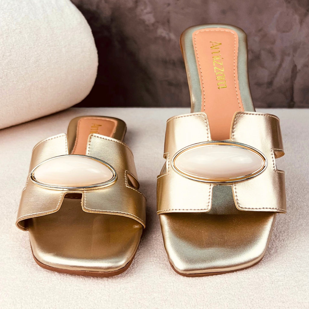 Sandália Rasteirinha Feminina H Aplique Amendoa Lesma Chic Chinelo Bico Quadrado