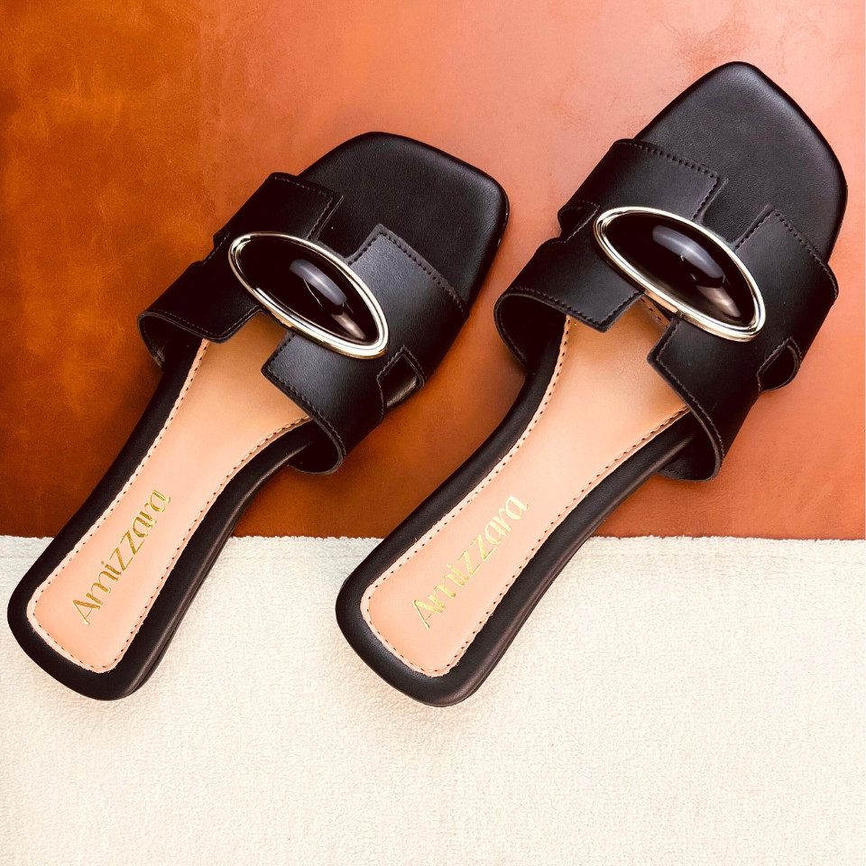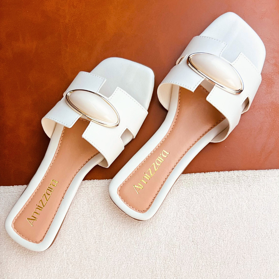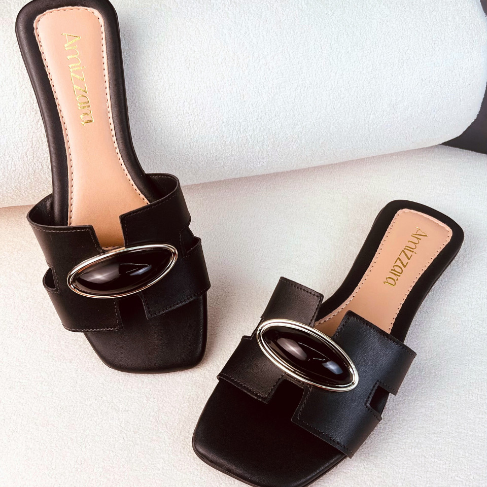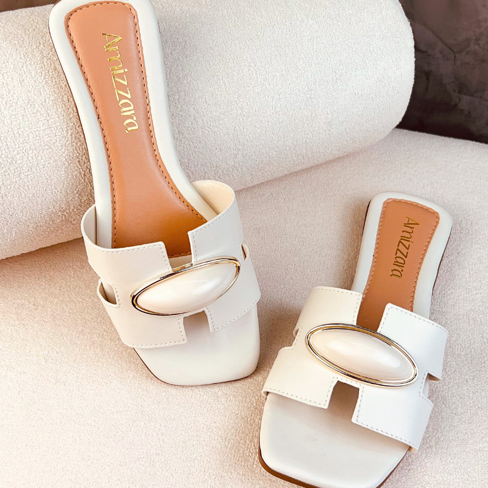 Sandália Rasteirinha Feminina H Aplique Amendoa Lesma Chic Chinelo Bico Quadrado