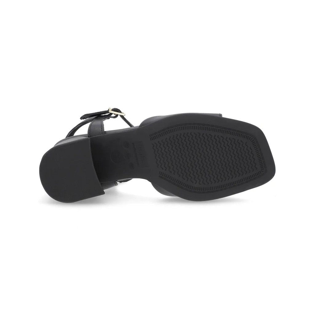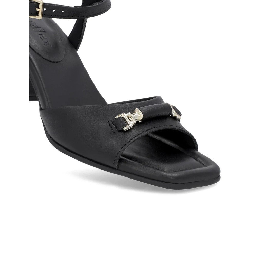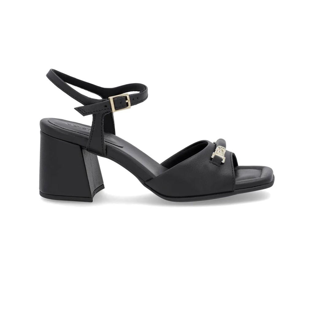 Sandália Salto Bloco Preta Couro Bico Quadrado Usaflex