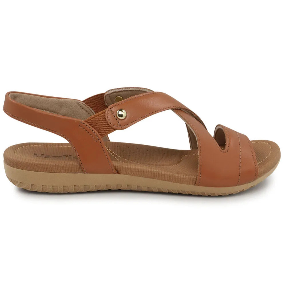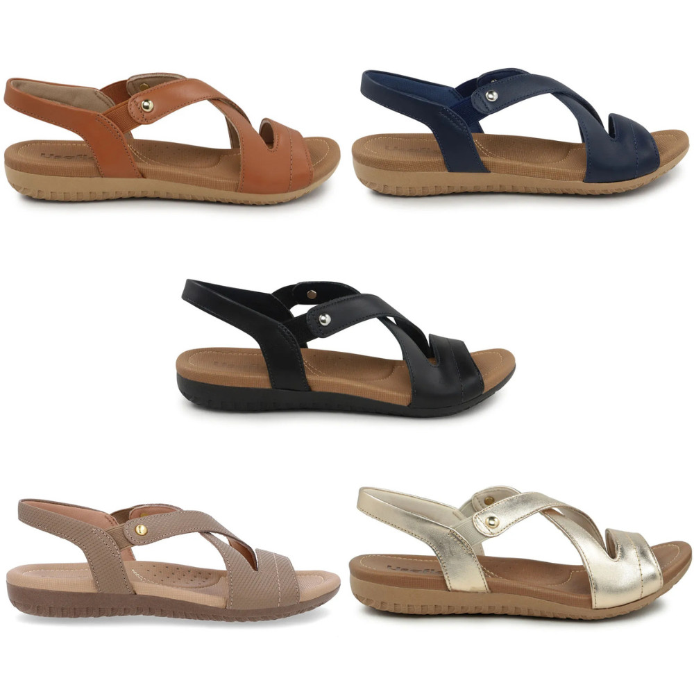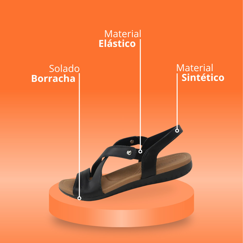 Sandália Usaflex Feminina Rasteira Couro Elástico Ortopédico Esporão conforto