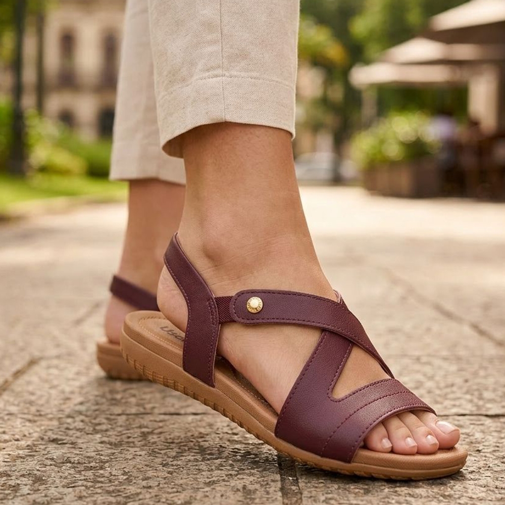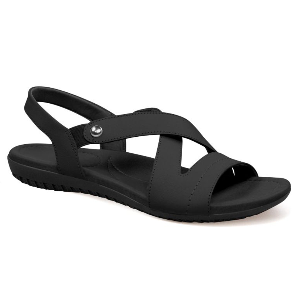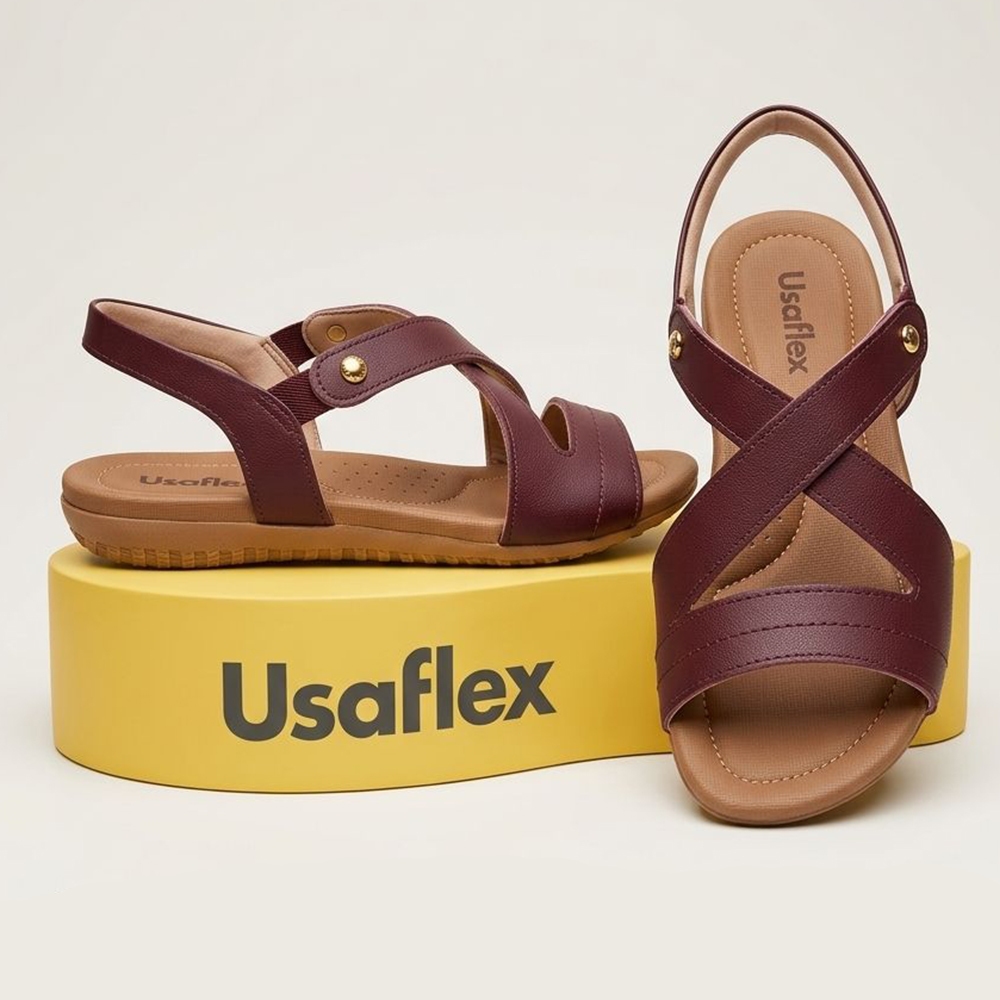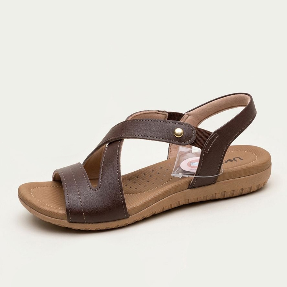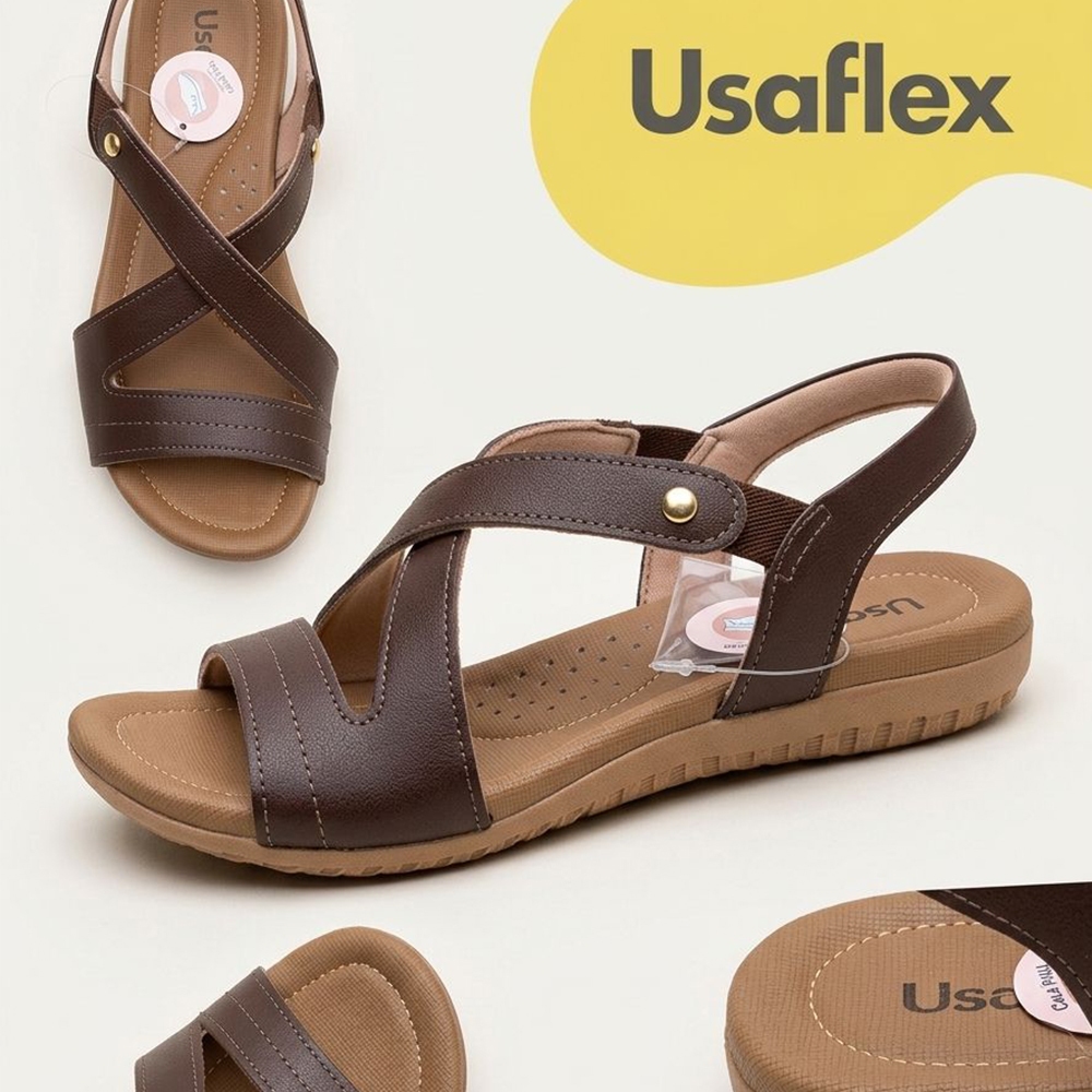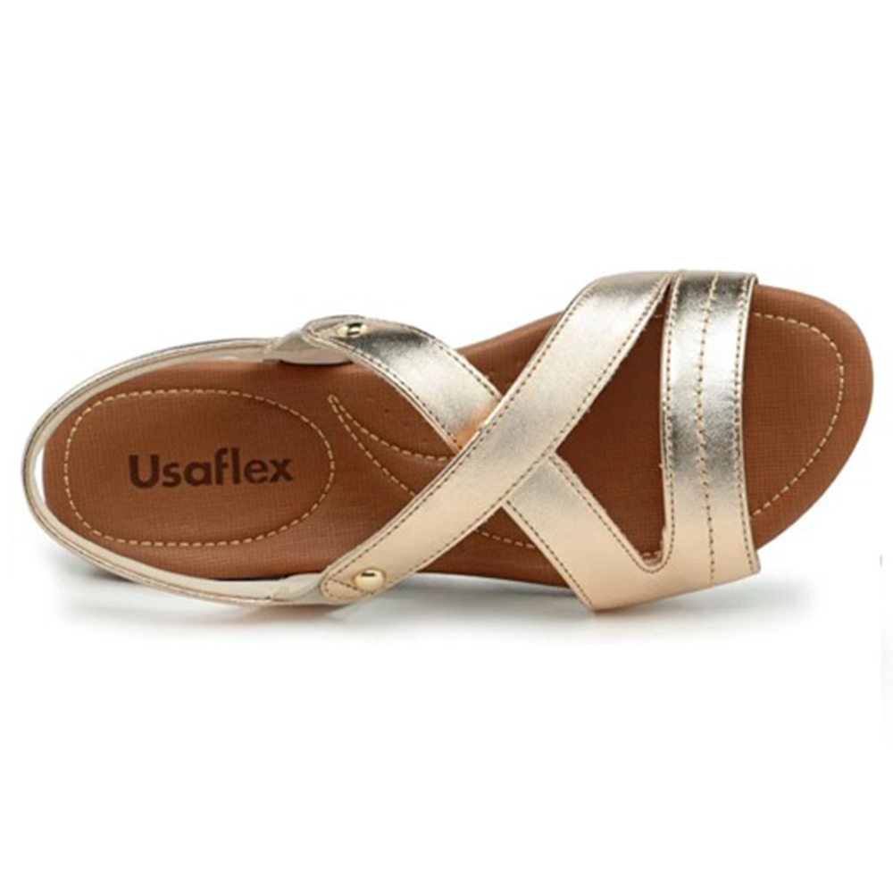 Sandália Usaflex Rasteira Couro Elastico Conforto R1804