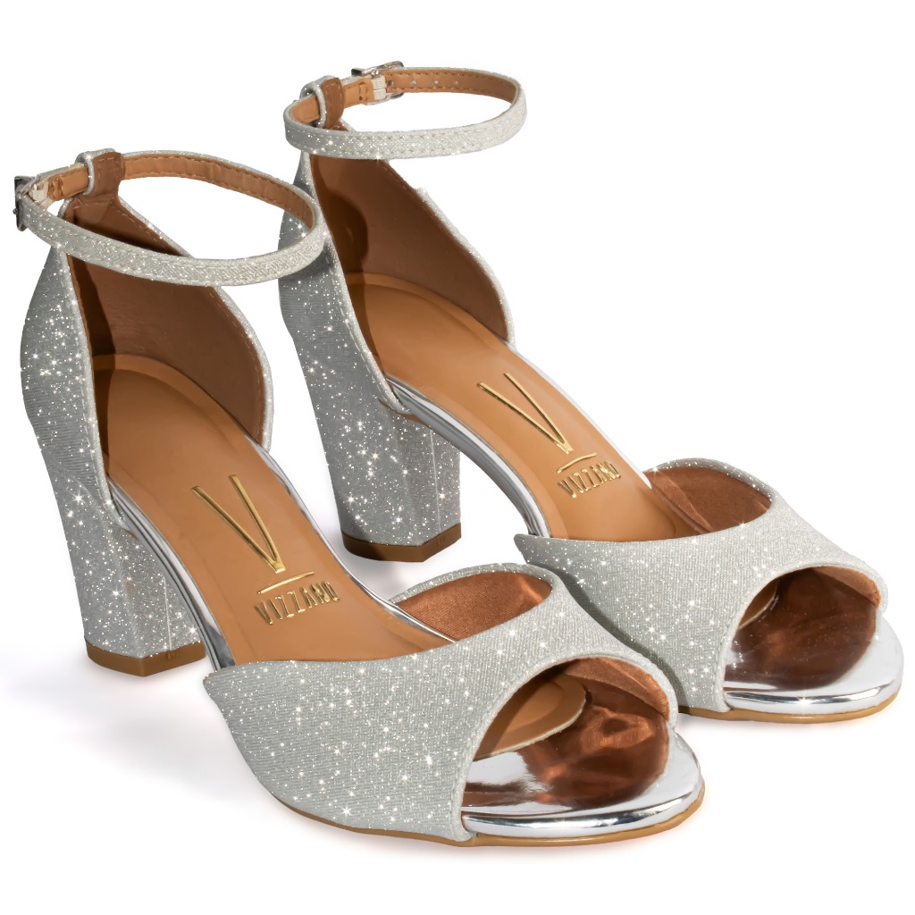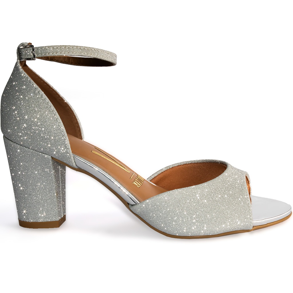 Sandália Vizzano Salto Bloco Médio Grosso Confortável 6262-406 Prata