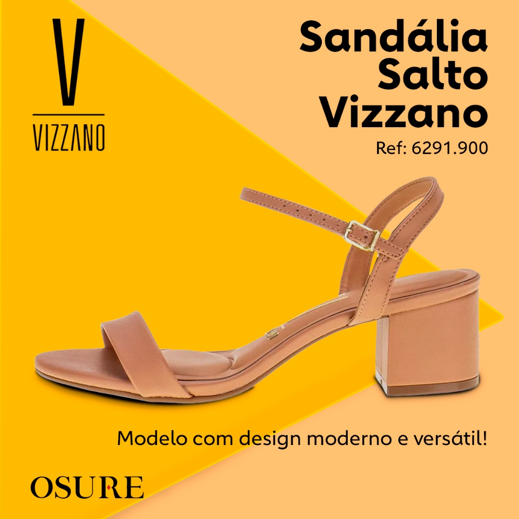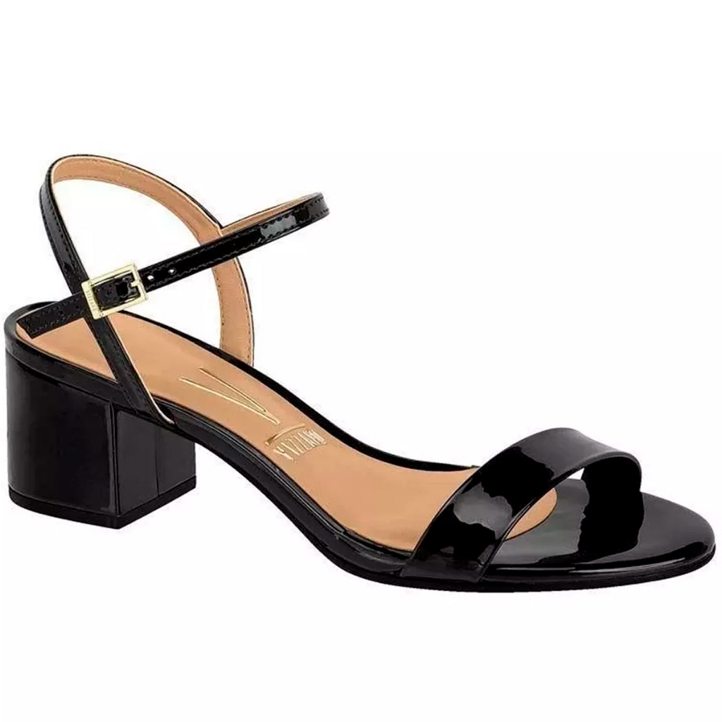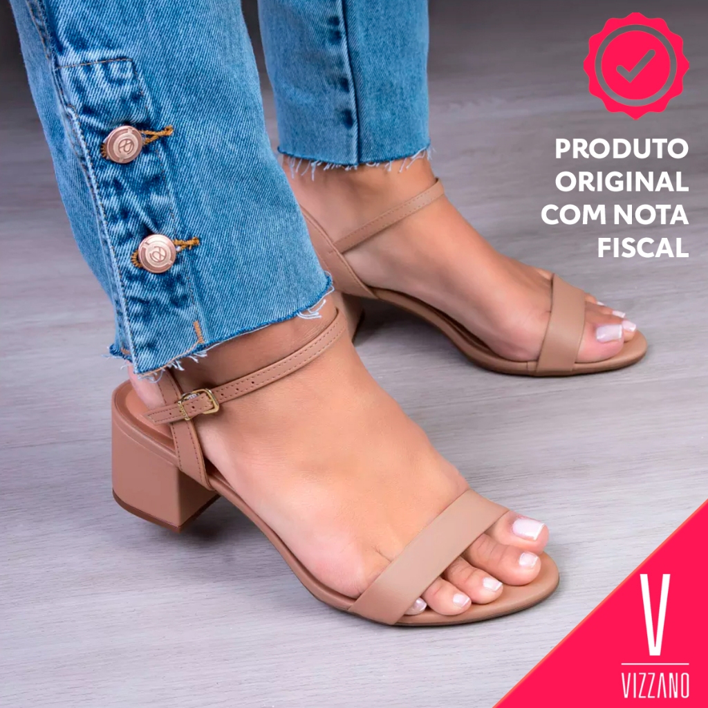 Sandália Vizzano Salto Médio Grosso Confortável Feminina Baixo Bloco Festa Social Casual Tiras Aberta Brilhante
