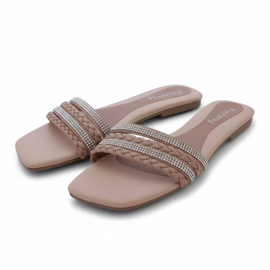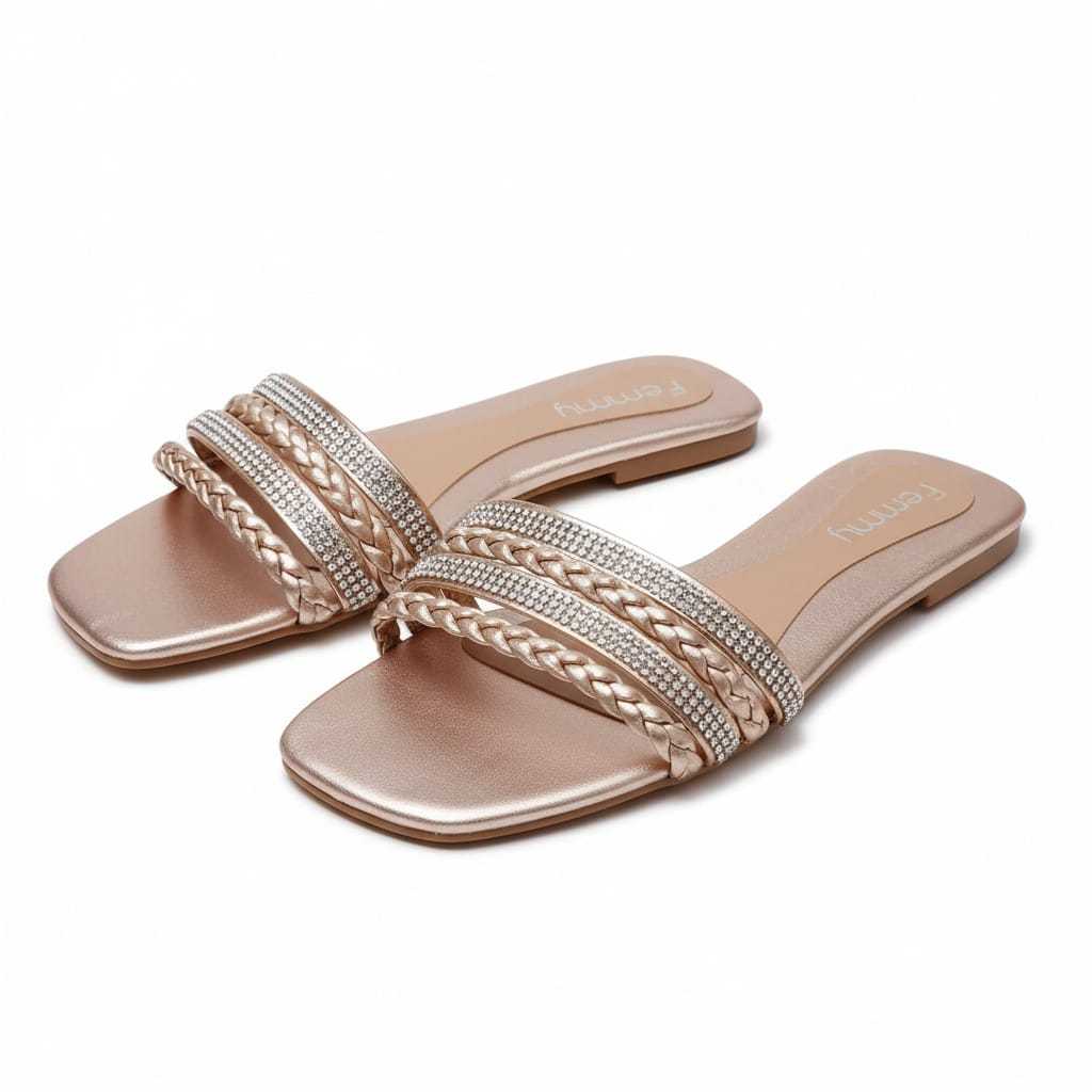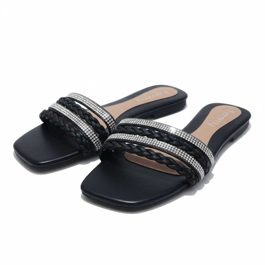 Sandália Rasteirinha, Rasteira Feminina Confortável, Com Brilho, Strass e Trança. Conforto e Estilo Para verão, praia