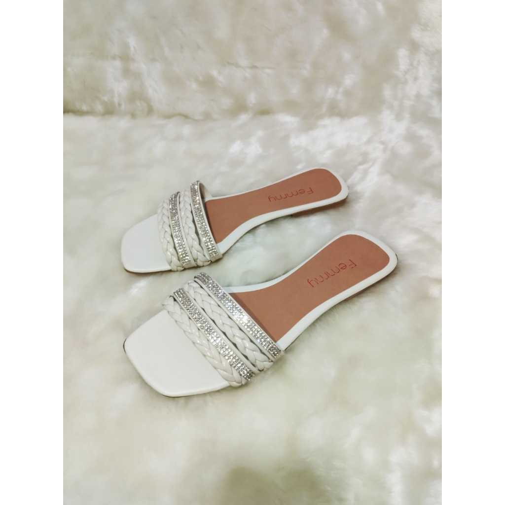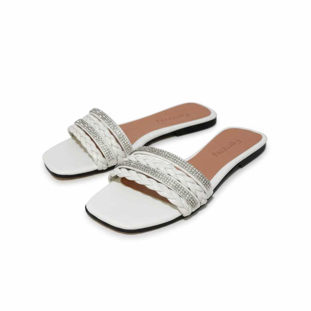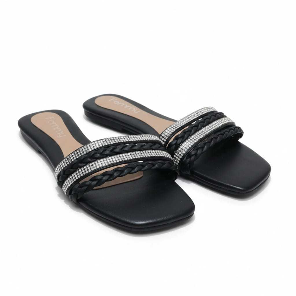 Sandália Rasteirinha, Rasteira Feminina Confortável, Com Brilho, Strass e Trança. Conforto e Estilo Para verão, praia