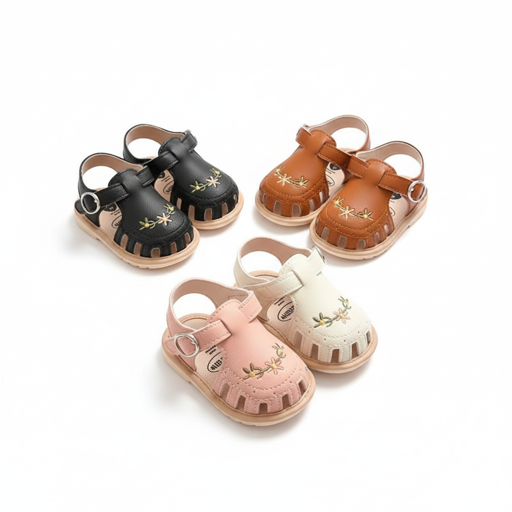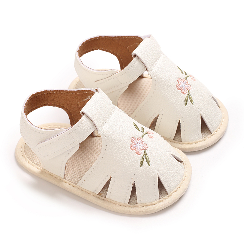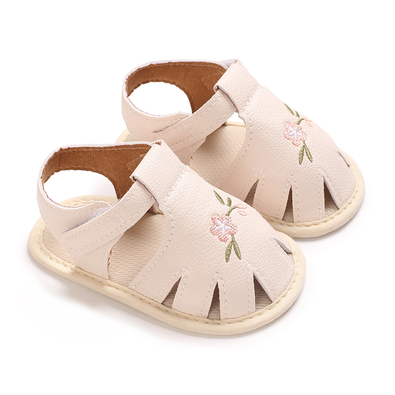 Sandálias De Verão Para Bebês De 0 A 1 Ano , Couro PU Antiderrapante , Flor Bordada , Sapatos Infantis De Praia Crianças