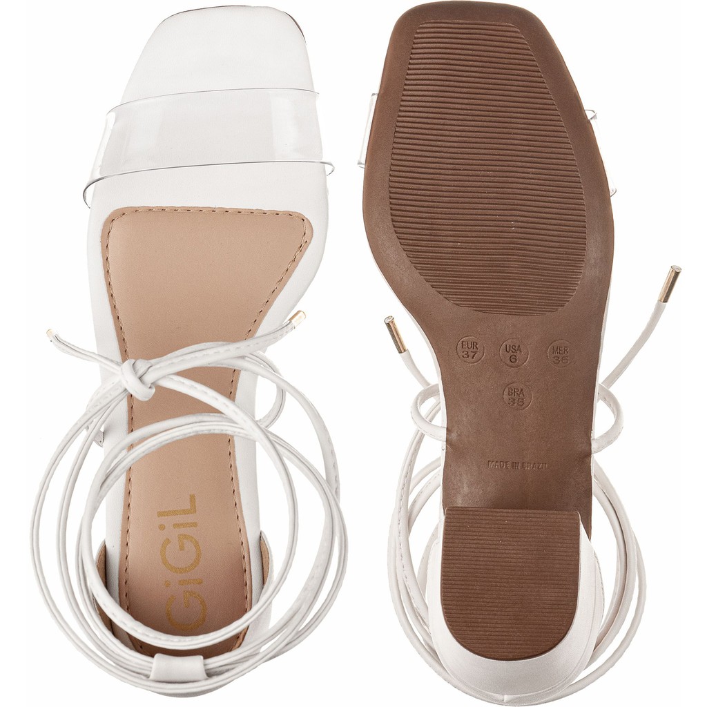 Sandalia Feminina Vinil Transparente Amarração Salto Médio Grosso Confortável De Amarrar Casual